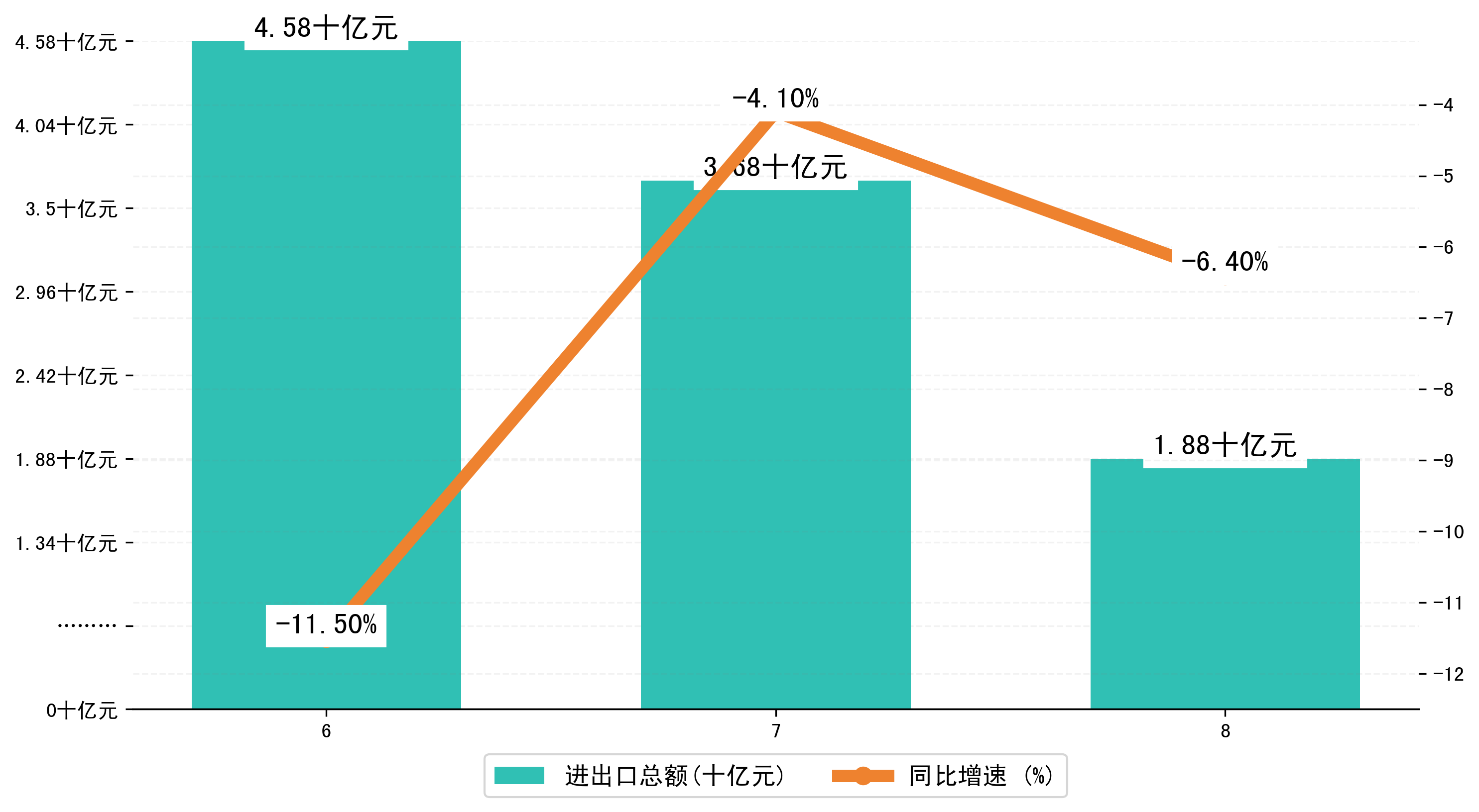 (图一:2024年6-8月宜宾市进出口总额)