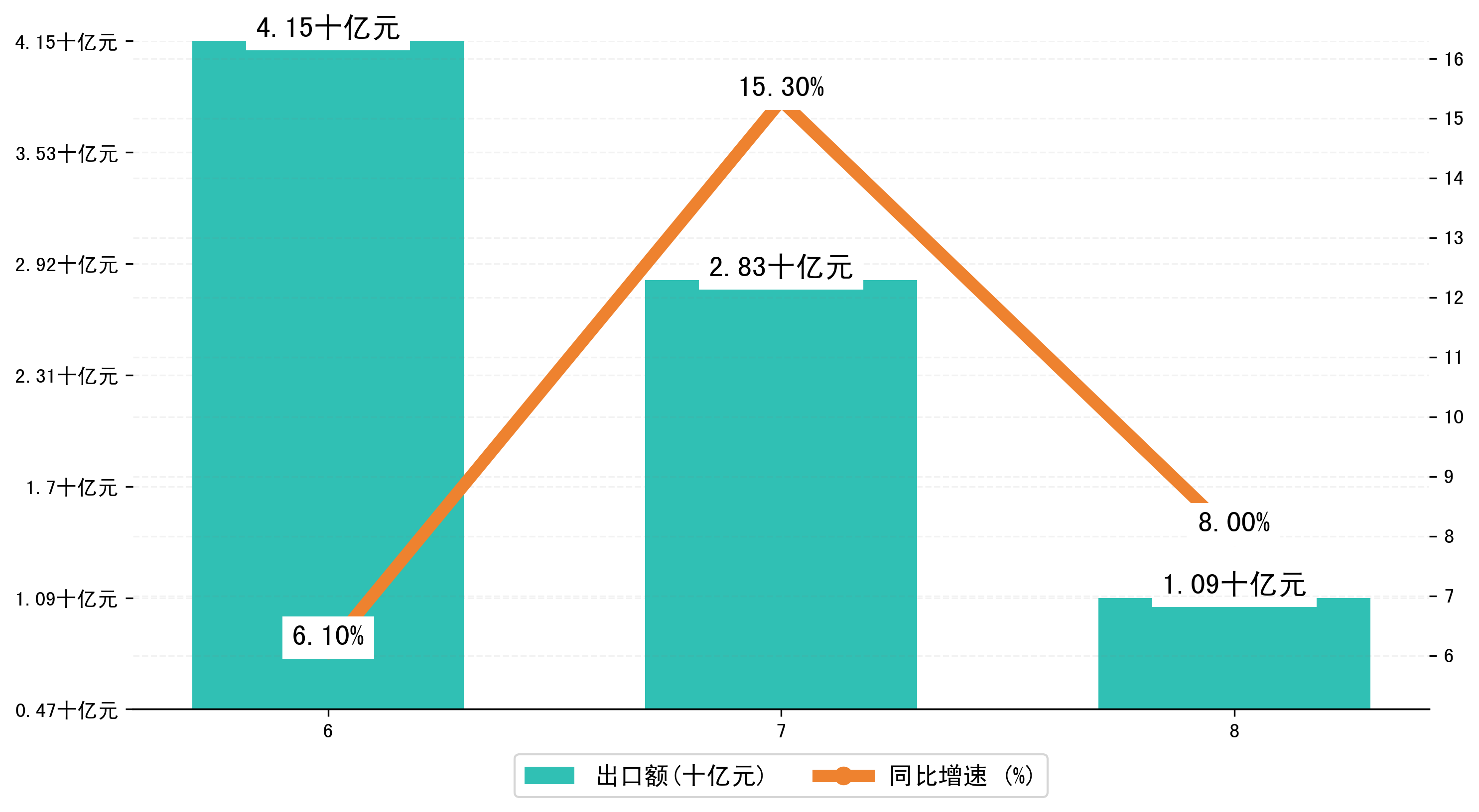 (图二:2024年6-8月宜宾市出口额)