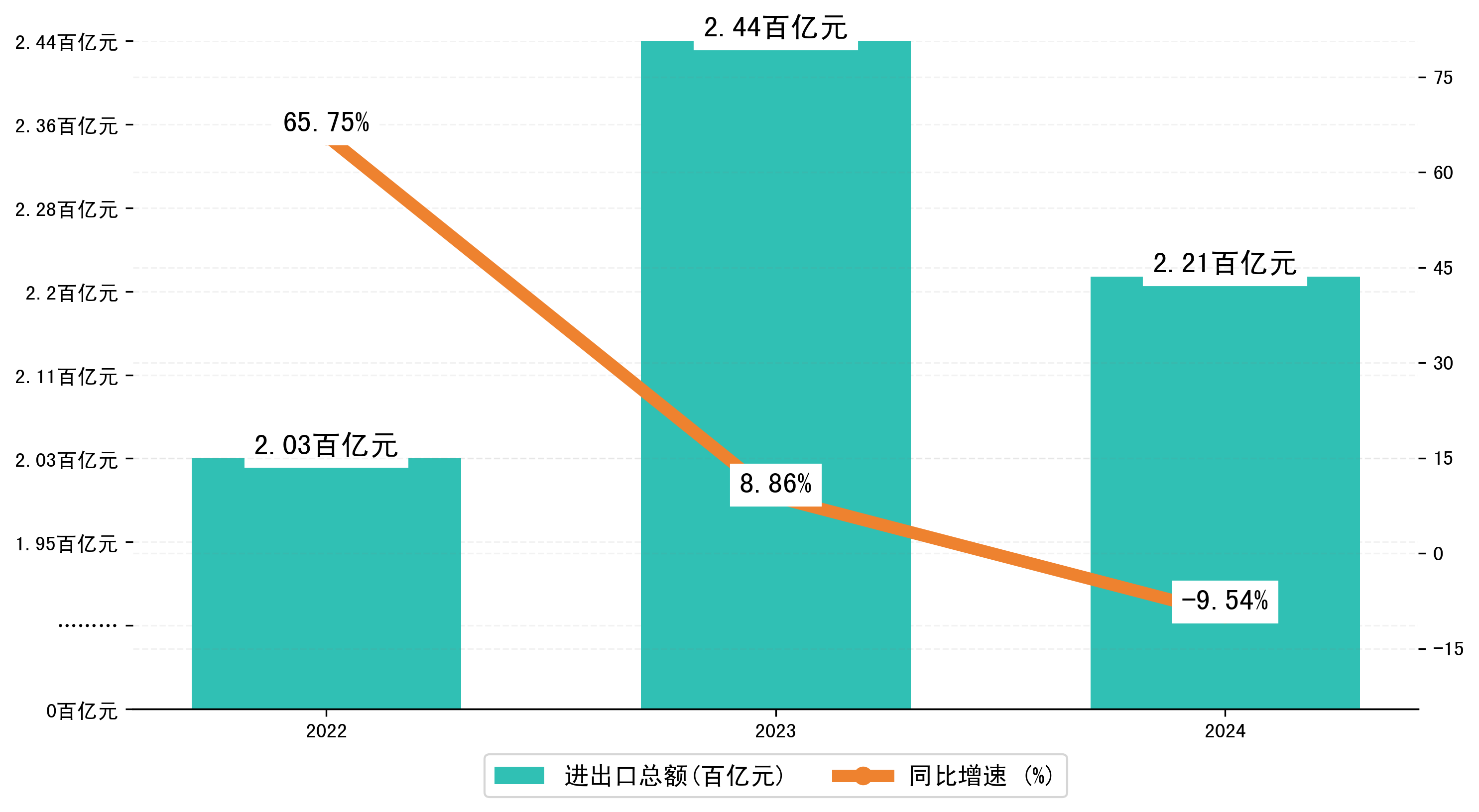 以人民币计,2024年1-8月宜宾市进出口总额为221,0650.1179万元,相比上年同期减少了23,3058.6365万元,同比减少了-6.40%。
