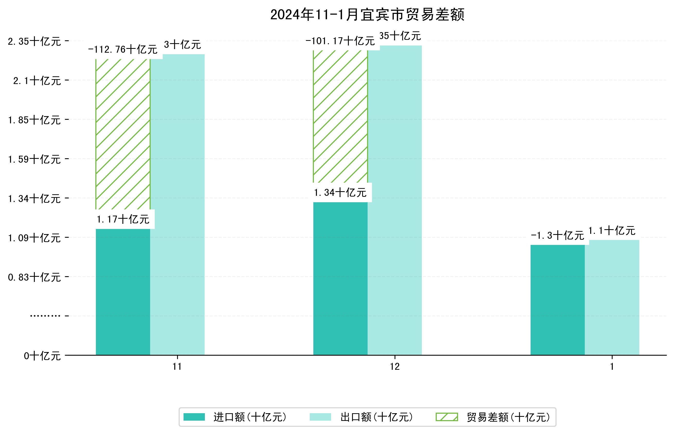 (图四:2024年11-1月宜宾市贸易差额)