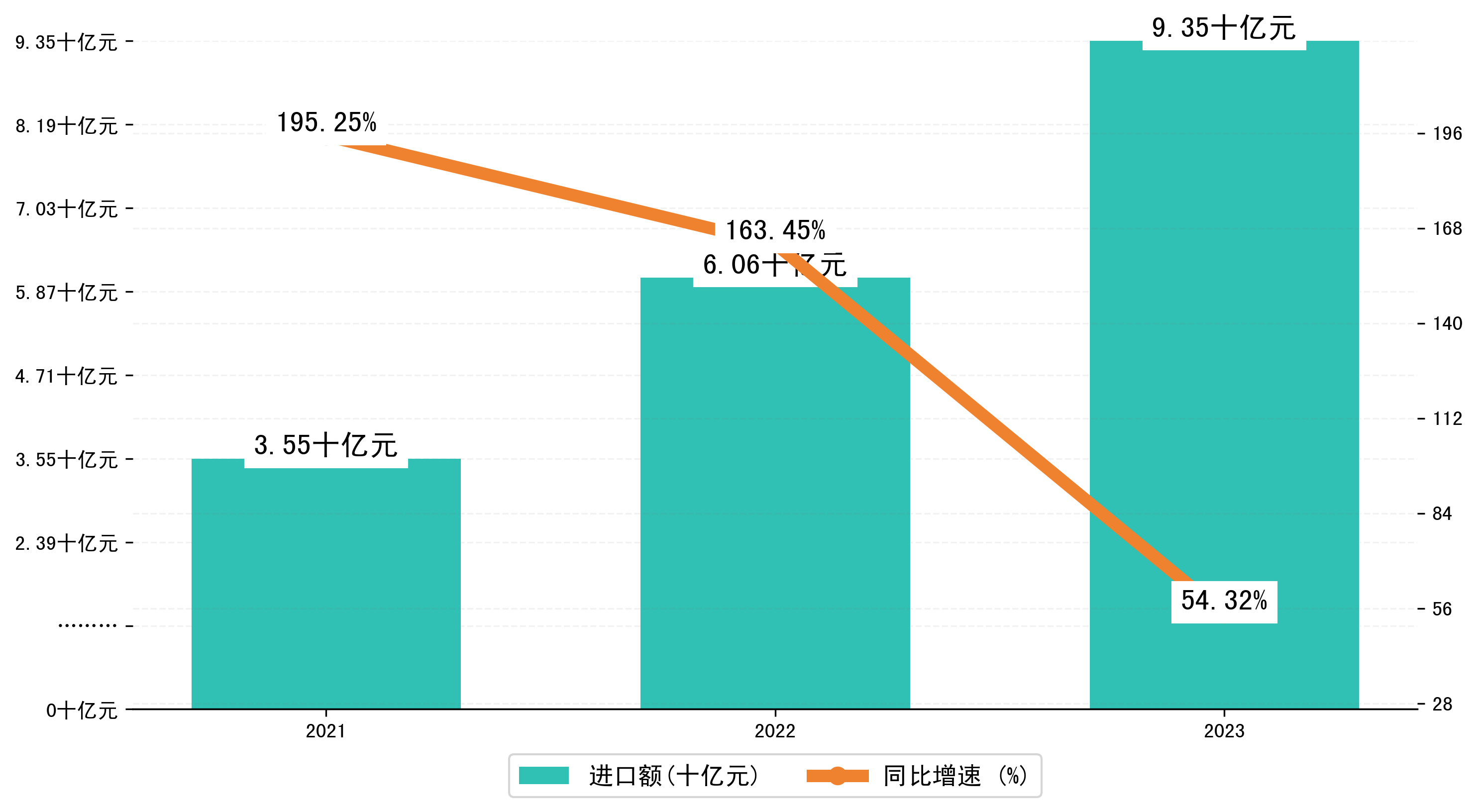 以人民币计,2023年1-7月宜宾市进口额为93,5087.444万元,相比上年同期增加了32,9136.4033万元,同比增加了55.00%。