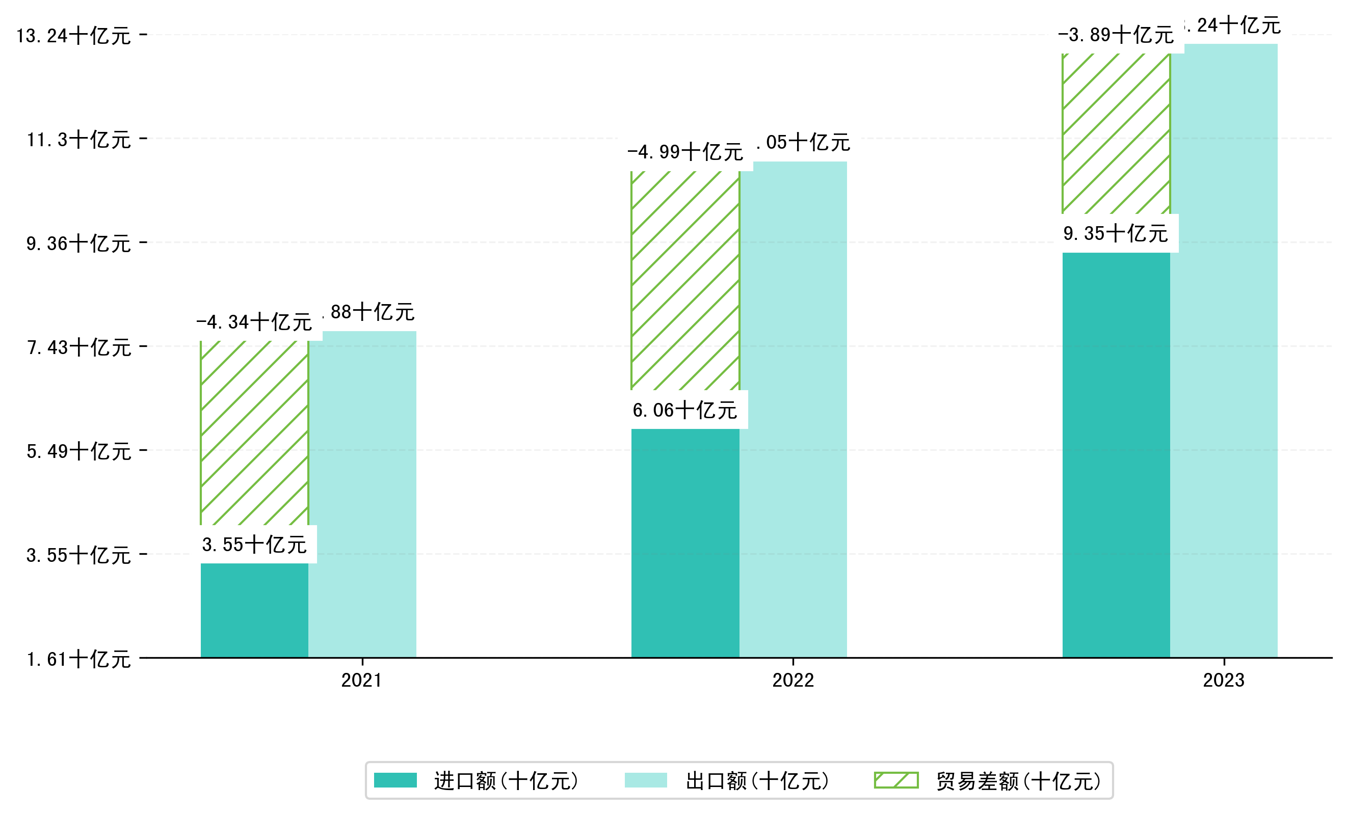 以美元计,2023年1-7月宜宾市进口额为13,5417.8727万美元,相比上年同期增加了4,2298.9453万美元,同比增加46.10%。