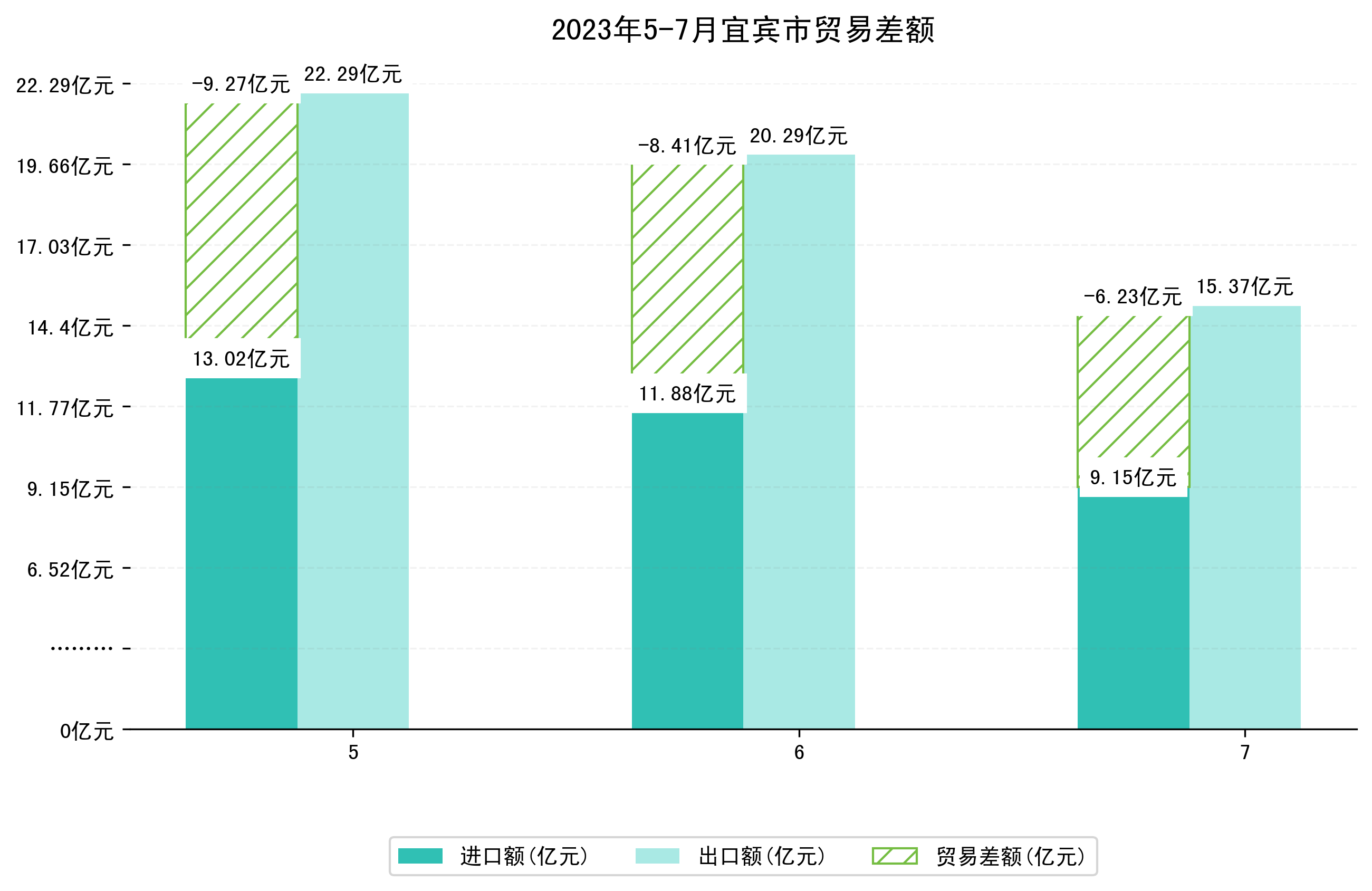 2023年7月宜宾市进出口总额及进出口差额统计分析