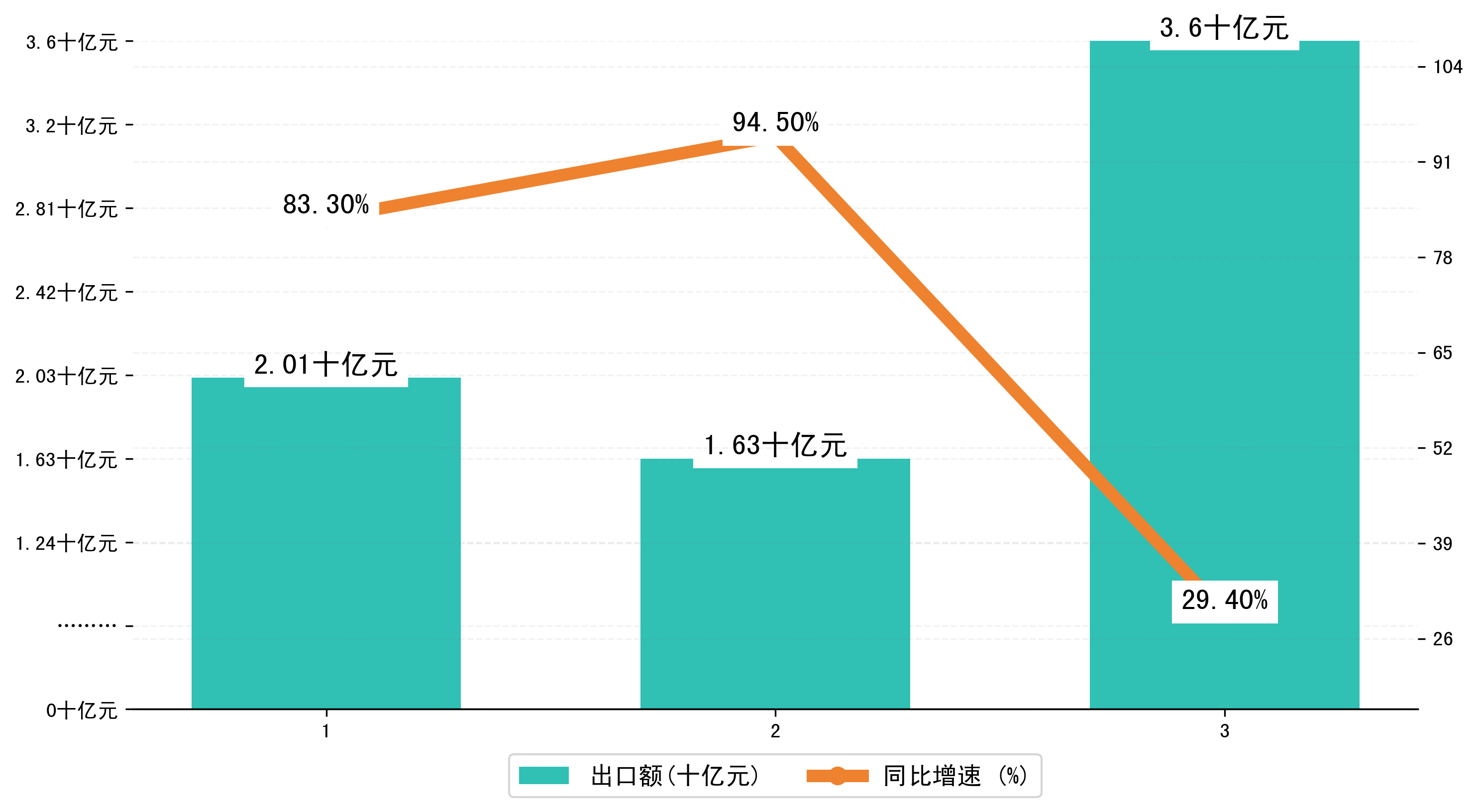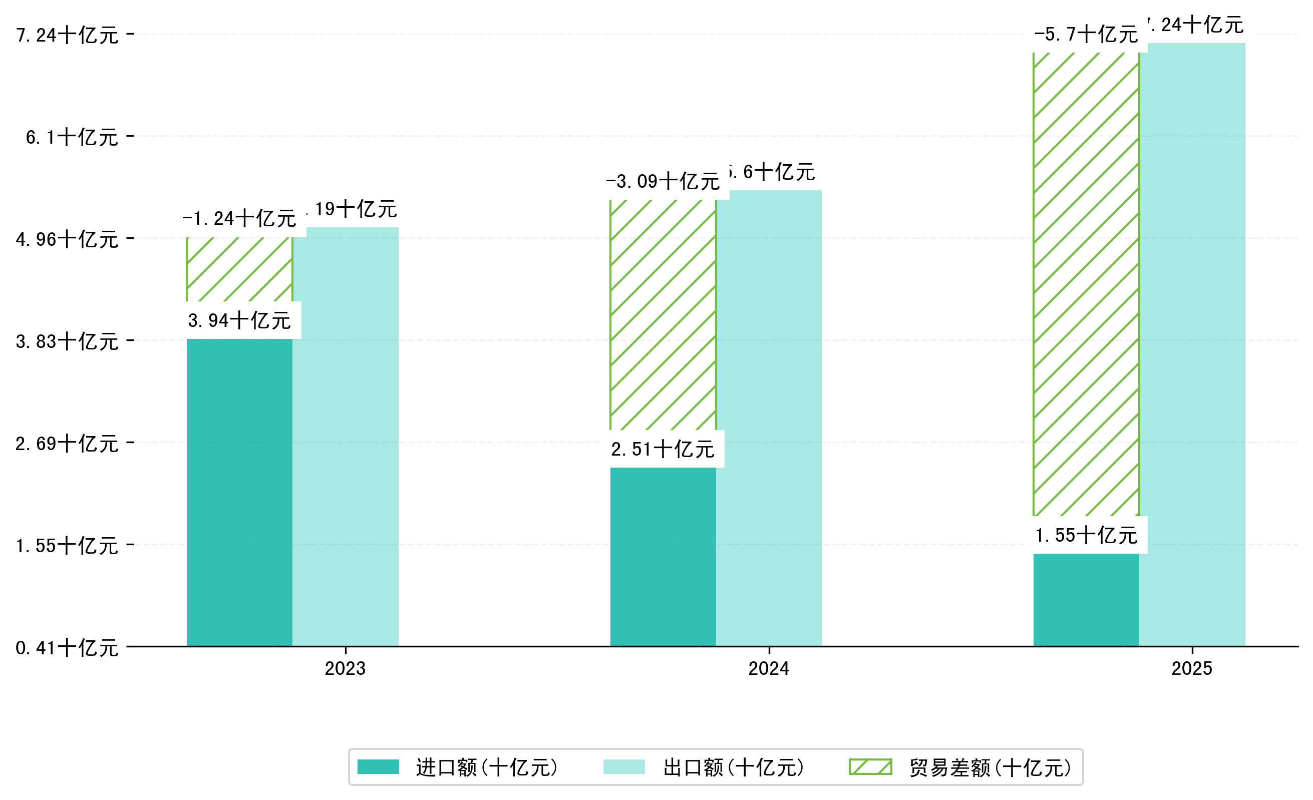 以美元计,2025年1-3月宜宾市贸易差额为7,9357,6601万美元(贸易顺差),相比上年同期增加了3,5779,8340万美元,同比增加82.11%。