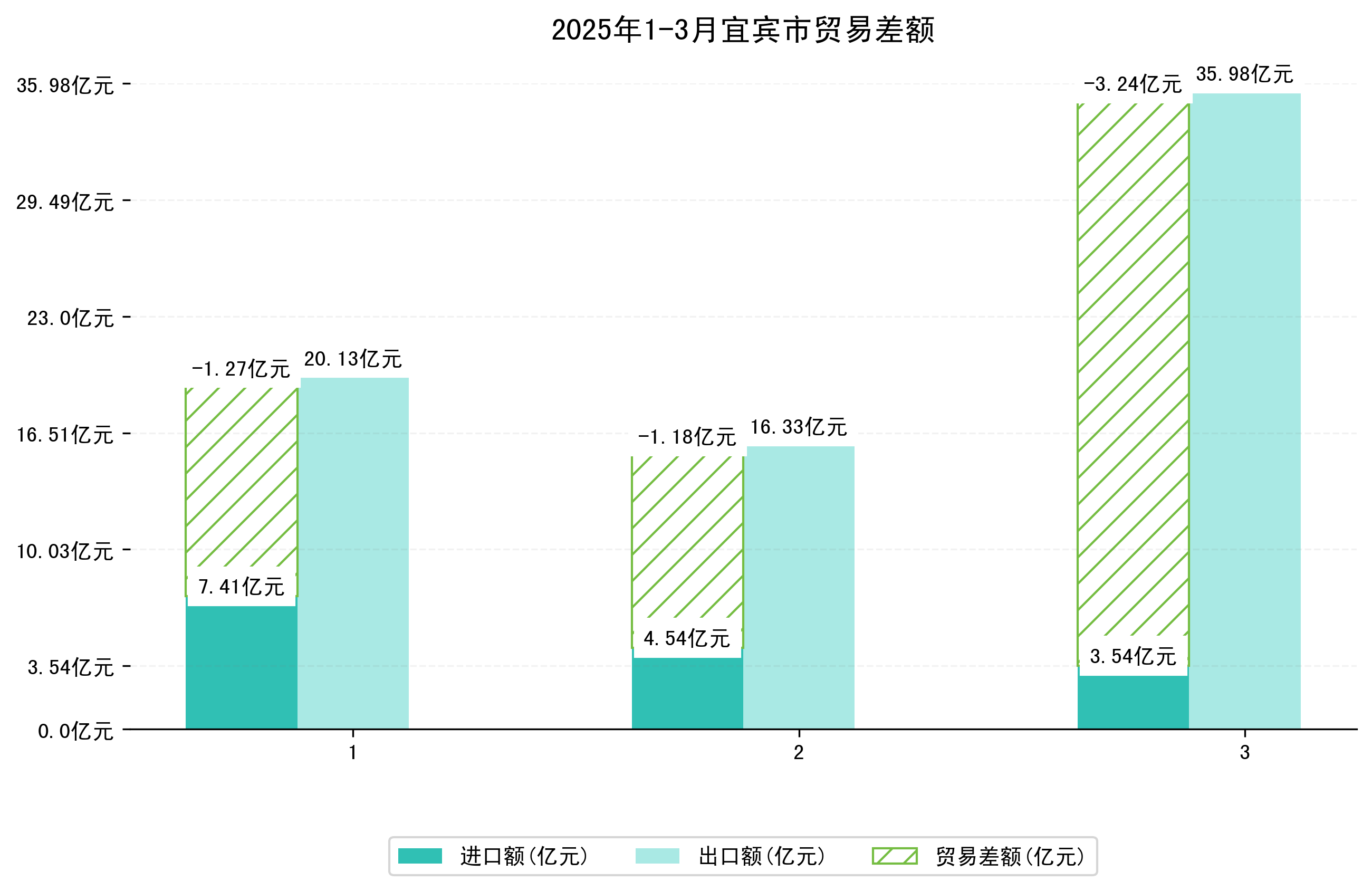 2025年3月宜宾市进出口总额及进出口差额统计分析