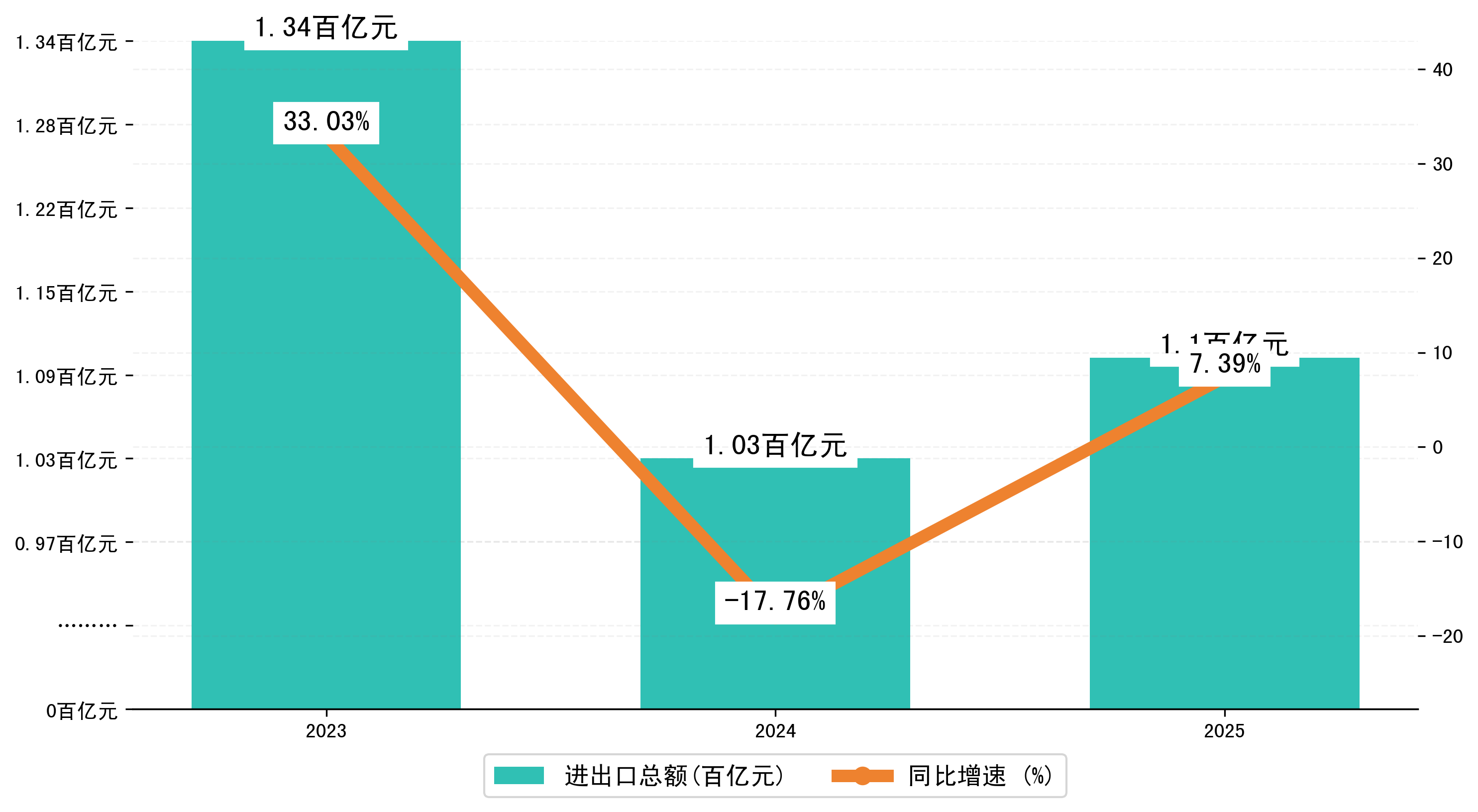 以美元计,2025年1-4月宜宾市进出口总额为15,3789.8304万美元,相比上年同期增加了9084.9398万美元,同比增加8.20%。