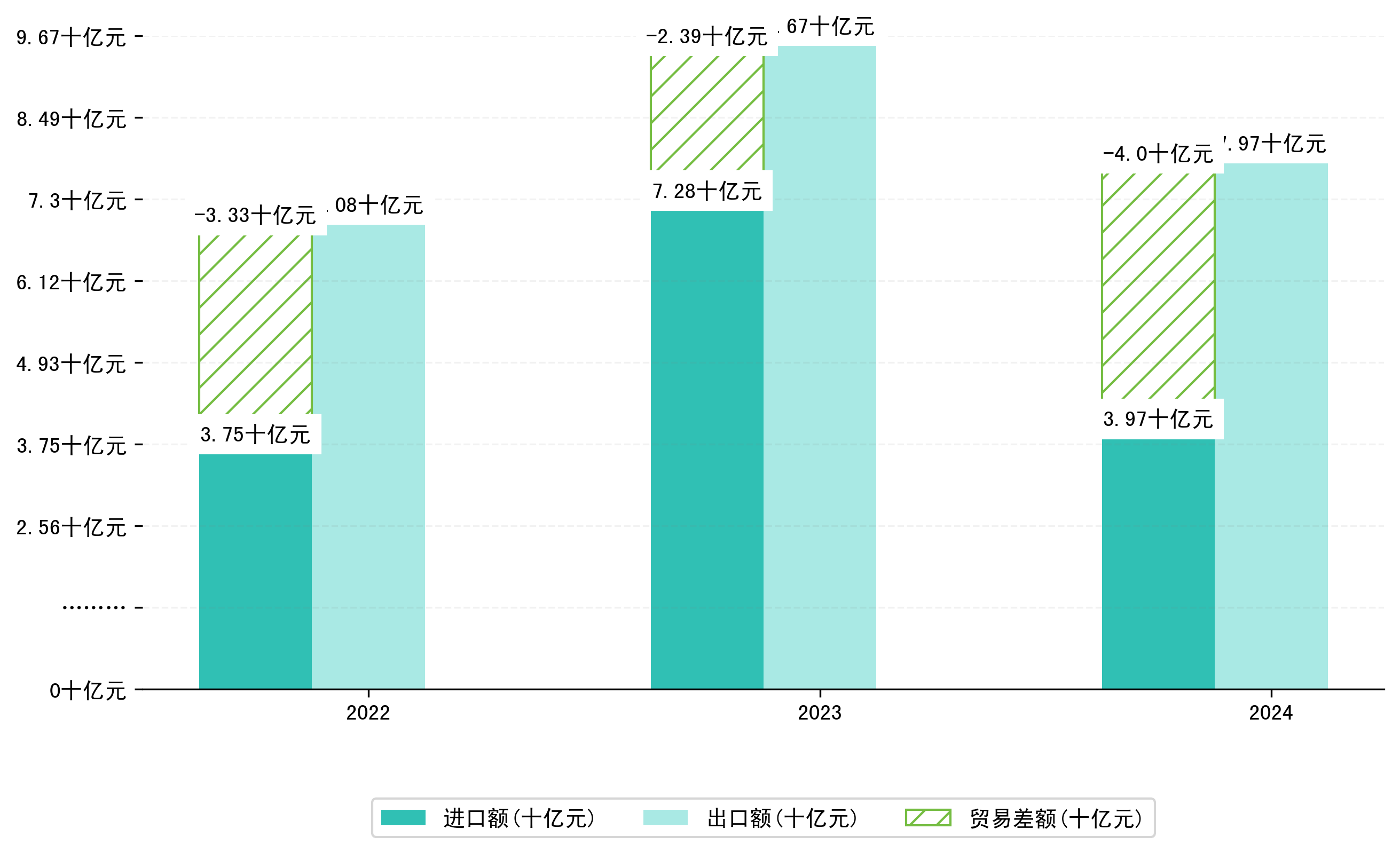 以人民币计,2024年5月宜宾市贸易差额为4,8907,1424万元(贸易顺差),相比上月增加了1,3240,4203万元,即1867,9644万美元;相比上年同期减少了4,3773,2313万元,同比减少-47.23%。