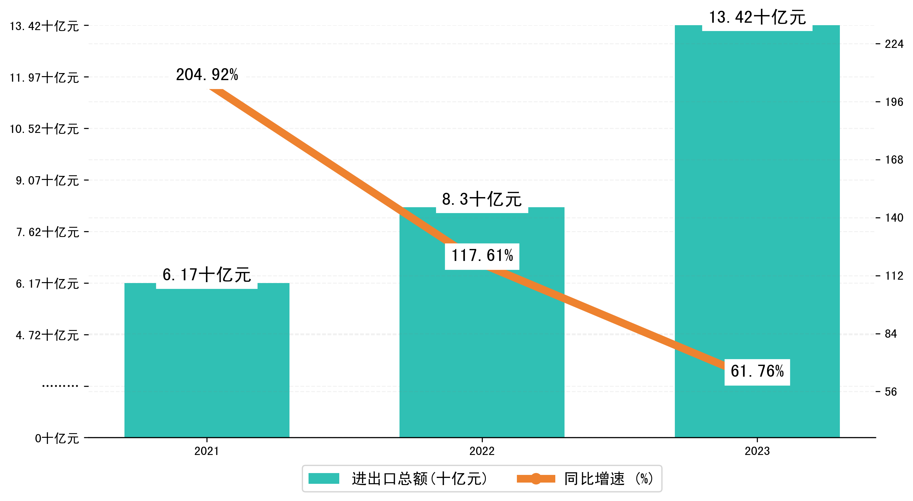以人民币计,2023年1-4月宜宾市进出口总额为134,2456.7608万元,相比上年同期增加了51,2566.9246万元,同比增加了60.70%。