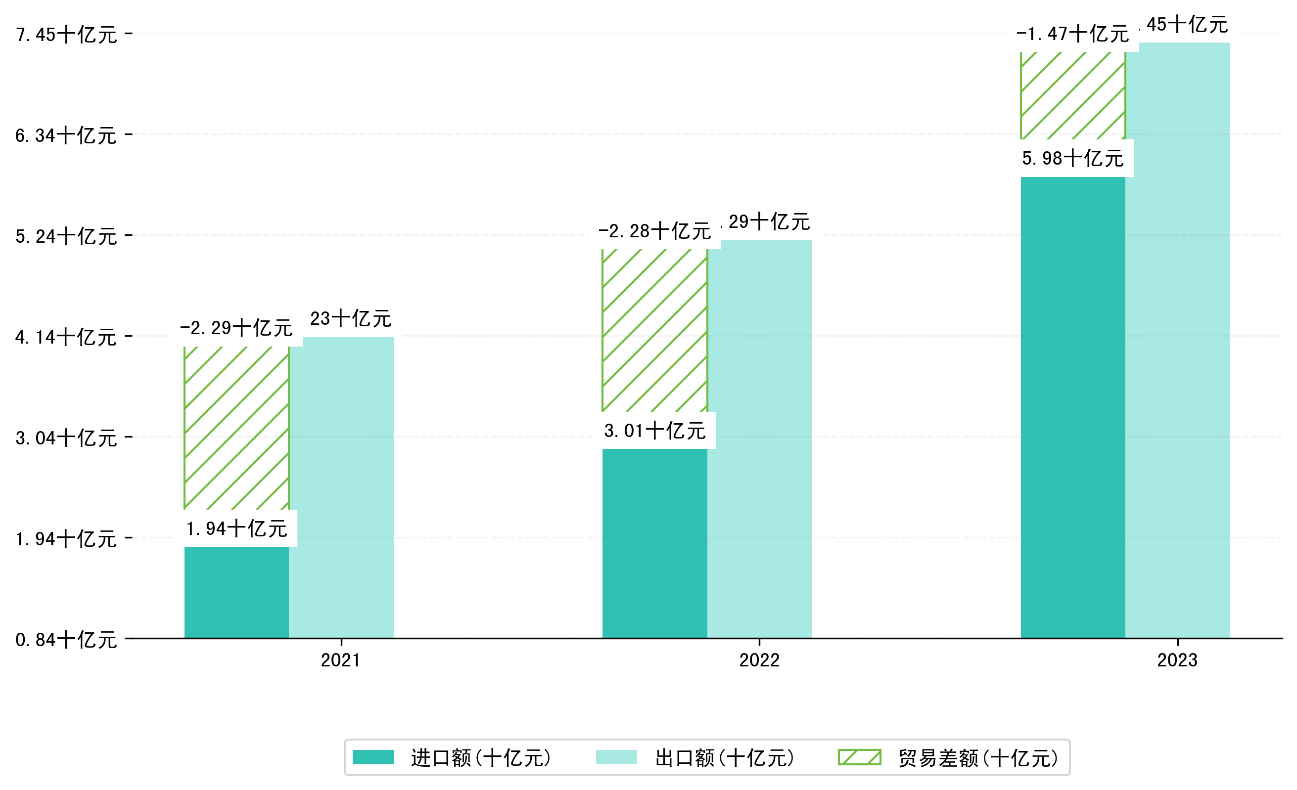 以美元计,2023年1-4月宜宾市贸易差额为2,1254,3562万美元(贸易顺差),相比上年同期减少了1,4638,1358万美元,同比减少-40.78%。