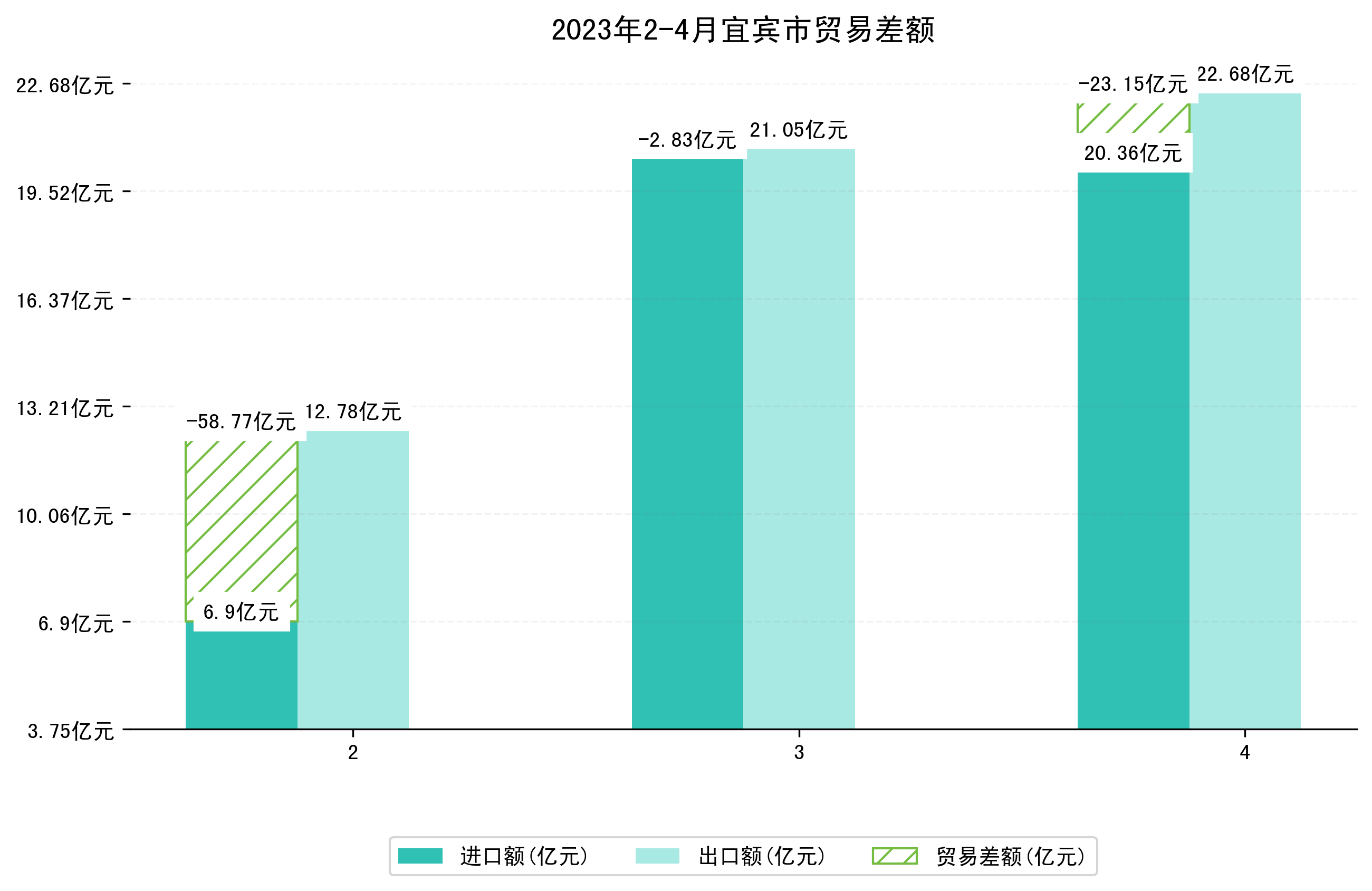 2023年4月宜宾市进出口总额及进出口差额统计分析