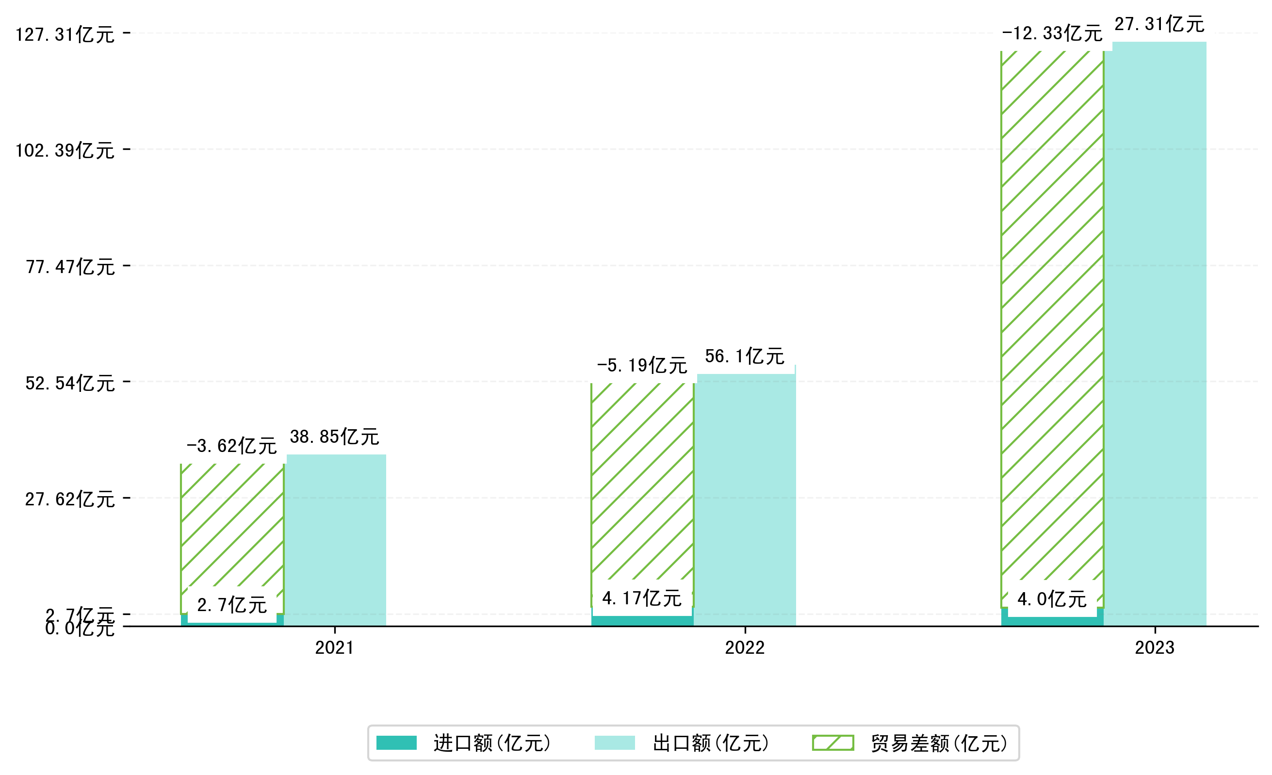 以人民币计,2023年1-2月宜春市贸易差额为123,3160,8368万元(贸易顺差),相比上年同期增加了71,3900,2831万元,同比增加137.48%。