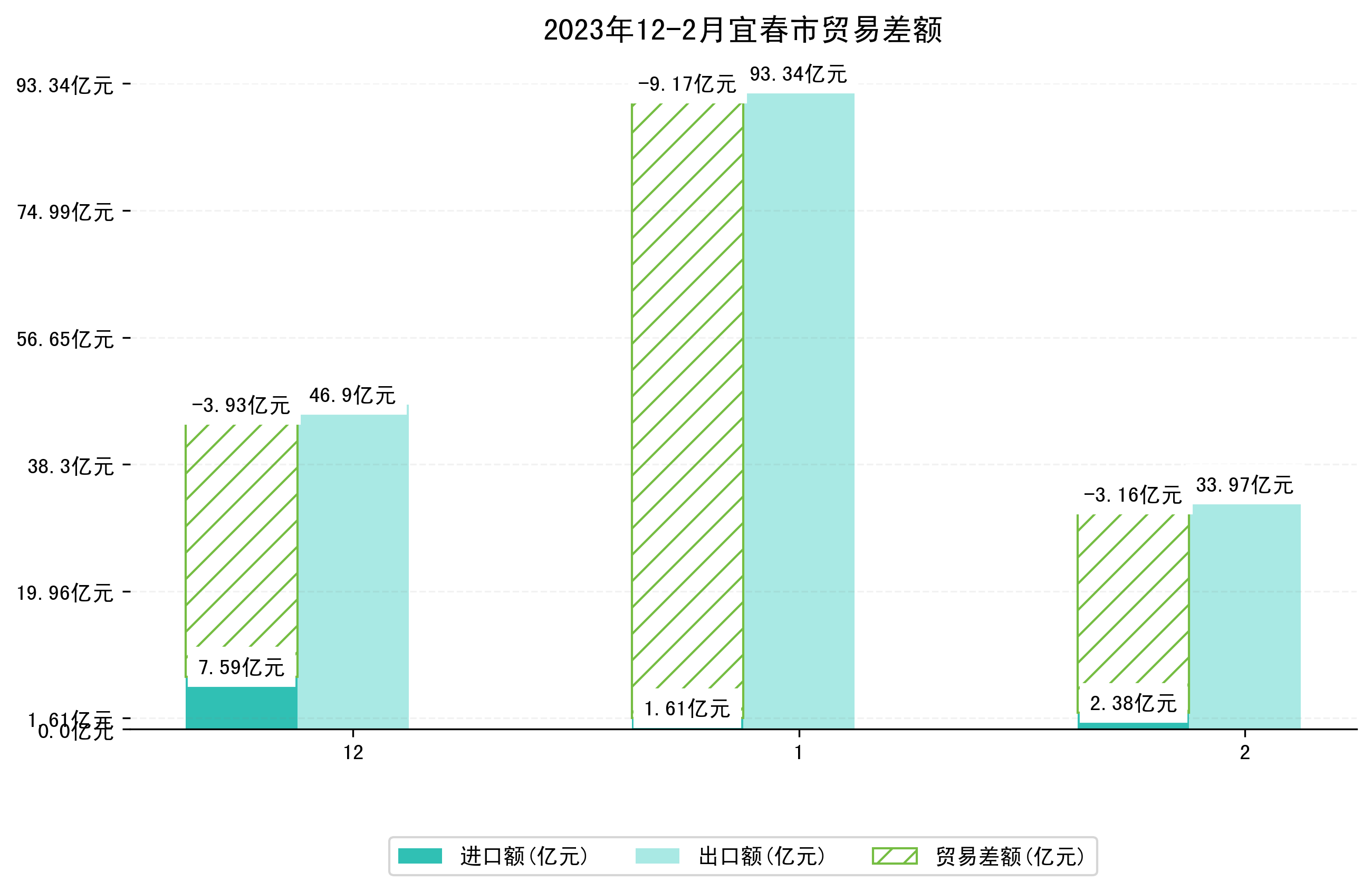 2023年2月宜春市进出口总额及进出口差额统计分析