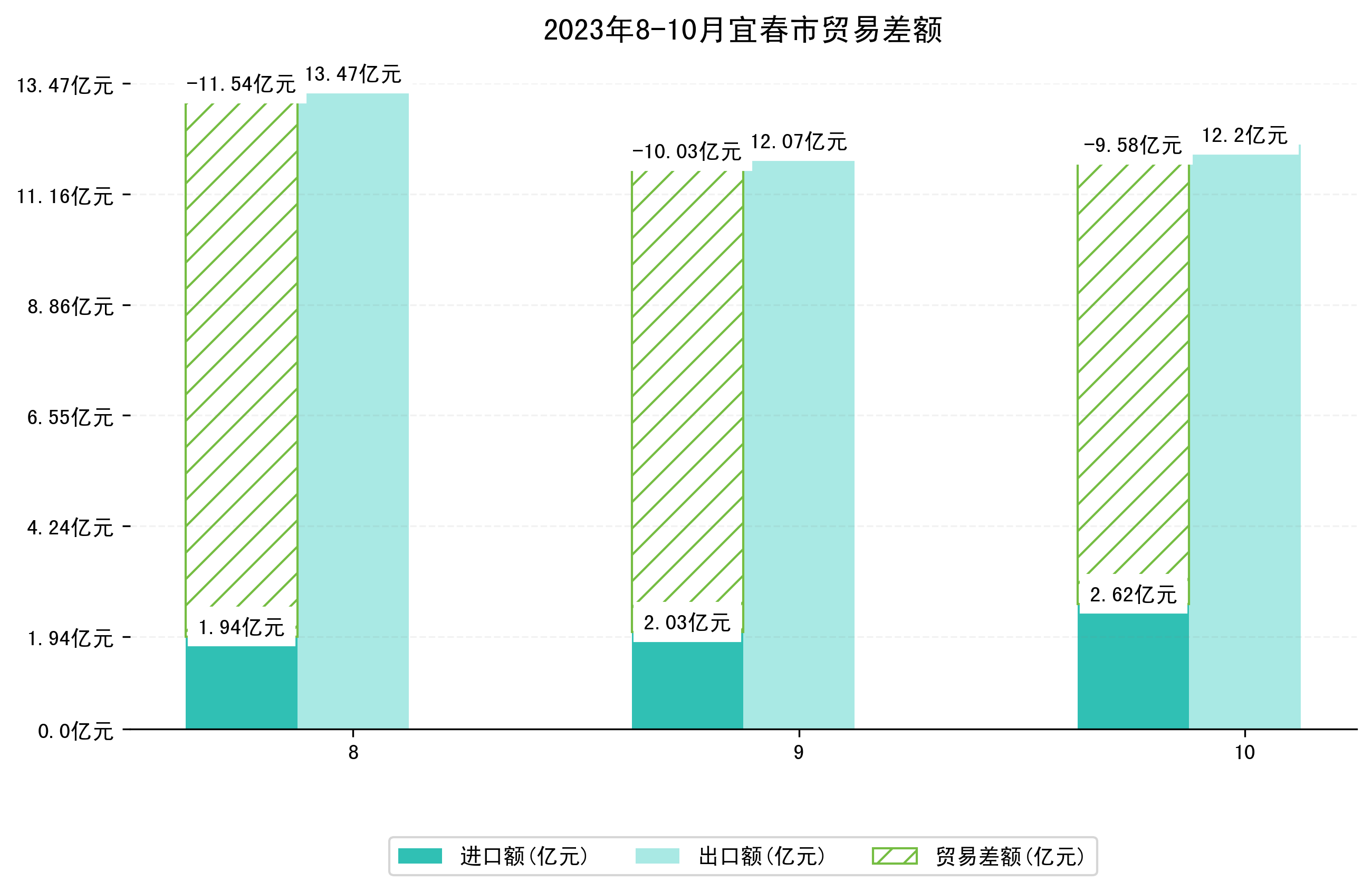 2023年10月宜春市进出口总额及进出口差额统计分析
