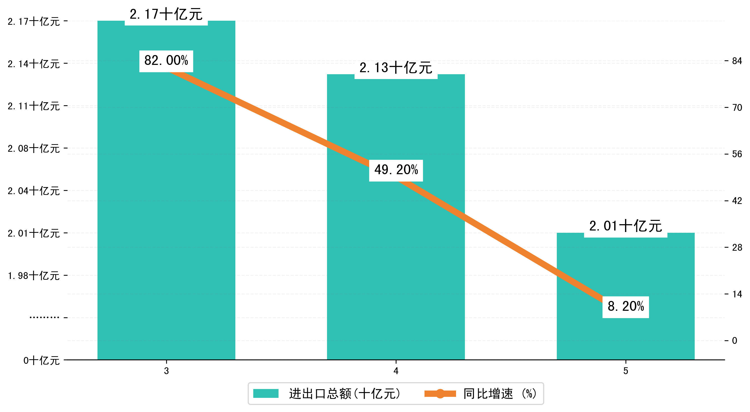 (图一:2023年3-5月宜春市进出口总额)
