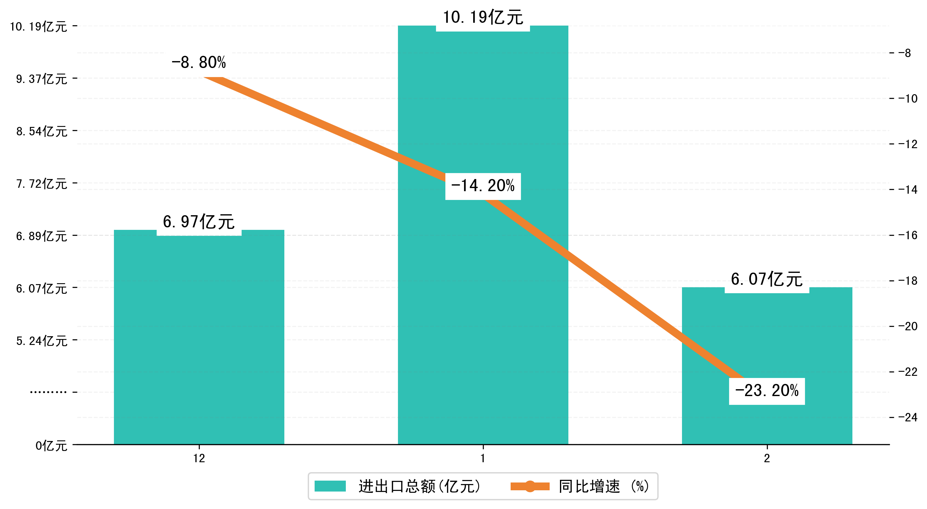 以美元计,2024年1-2月宝鸡市贸易差额为1,9834,5242万美元(贸易顺差),相比上年同期增加了1,2268,5136万美元,同比增加162.15%。