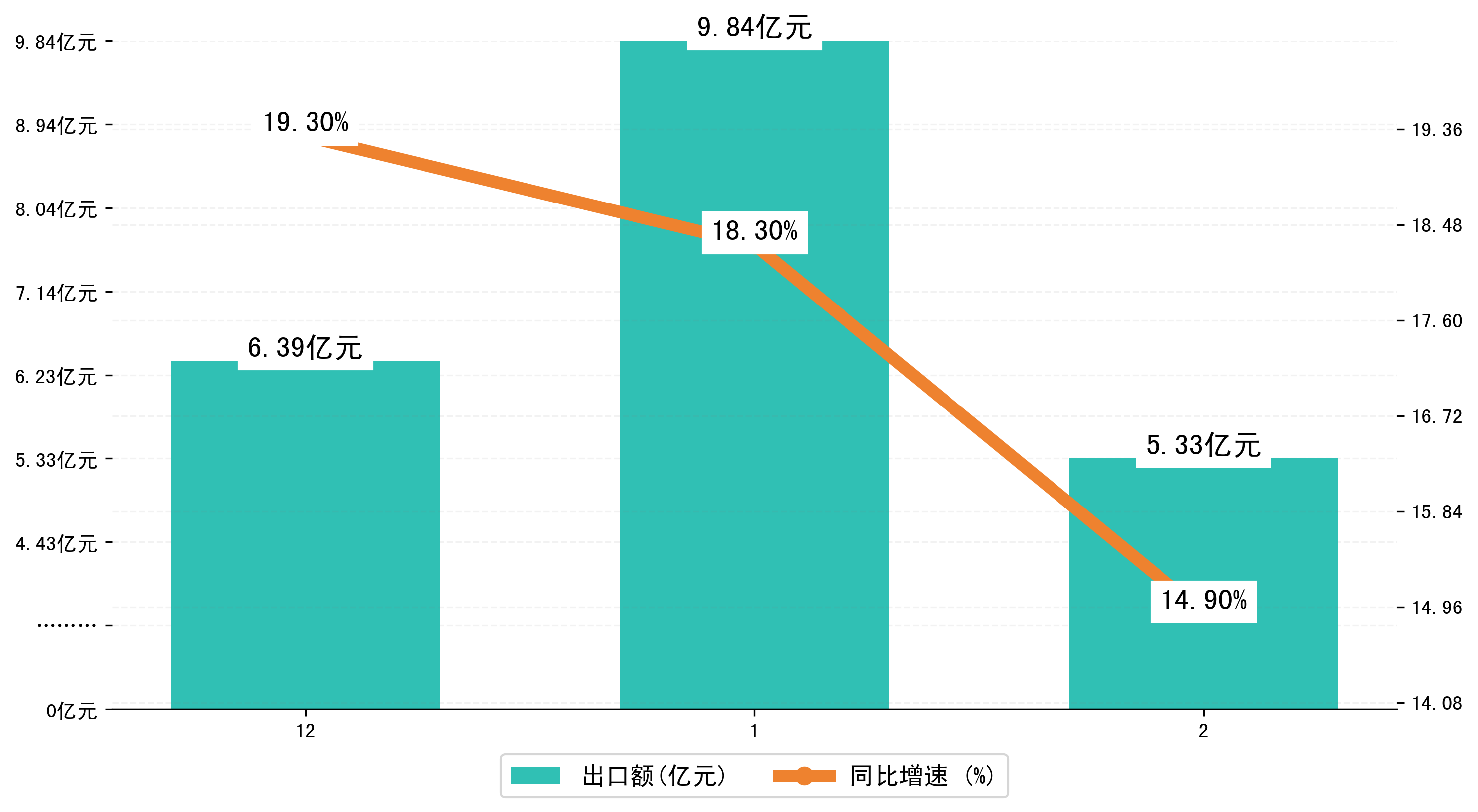 以人民币计,2024年1-2月宝鸡市出口额为15,1737.0376万元,相比上年同期增加了1,9620.9951万元,同比增加了14.90%。