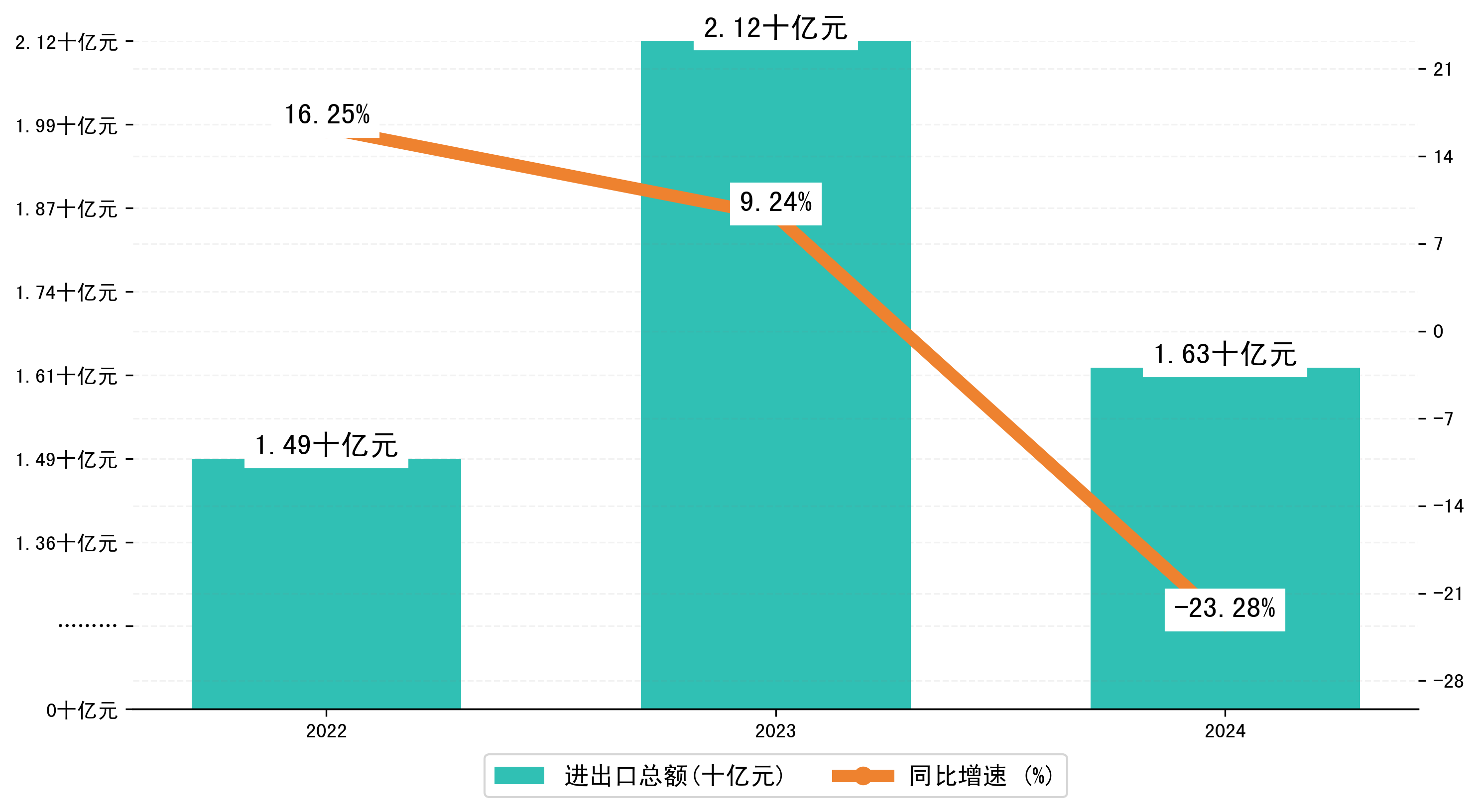 以人民币计,2024年1-2月宝鸡市进出口总额为16,2572.0079万元,相比上年同期减少了4,9331.8872万元,同比减少了-23.20%。