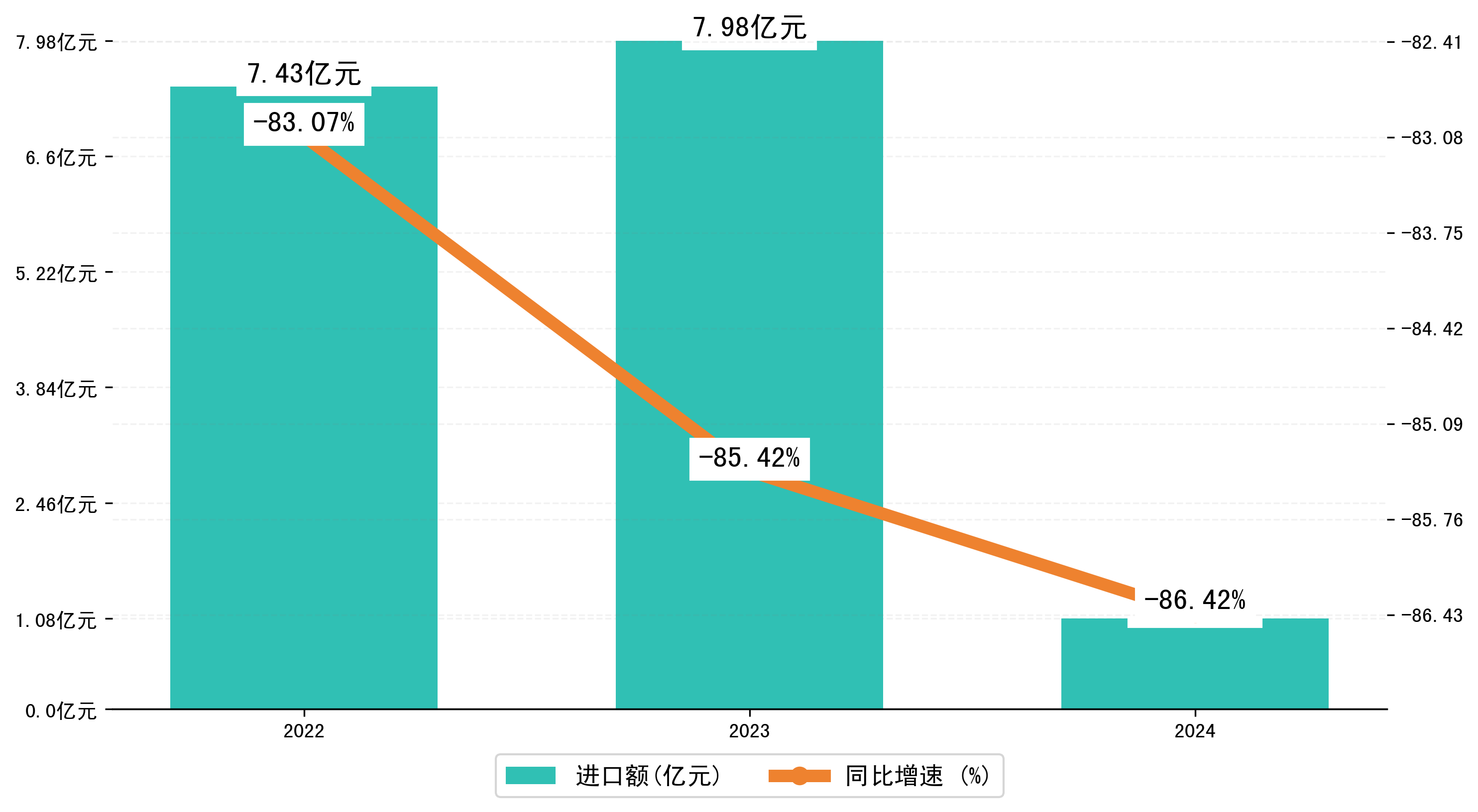 以人民币计,2024年1-2月宝鸡市进口额为1,0834.9703万元,相比上年同期减少了6,8952.8823万元,同比减少了-86.40%。