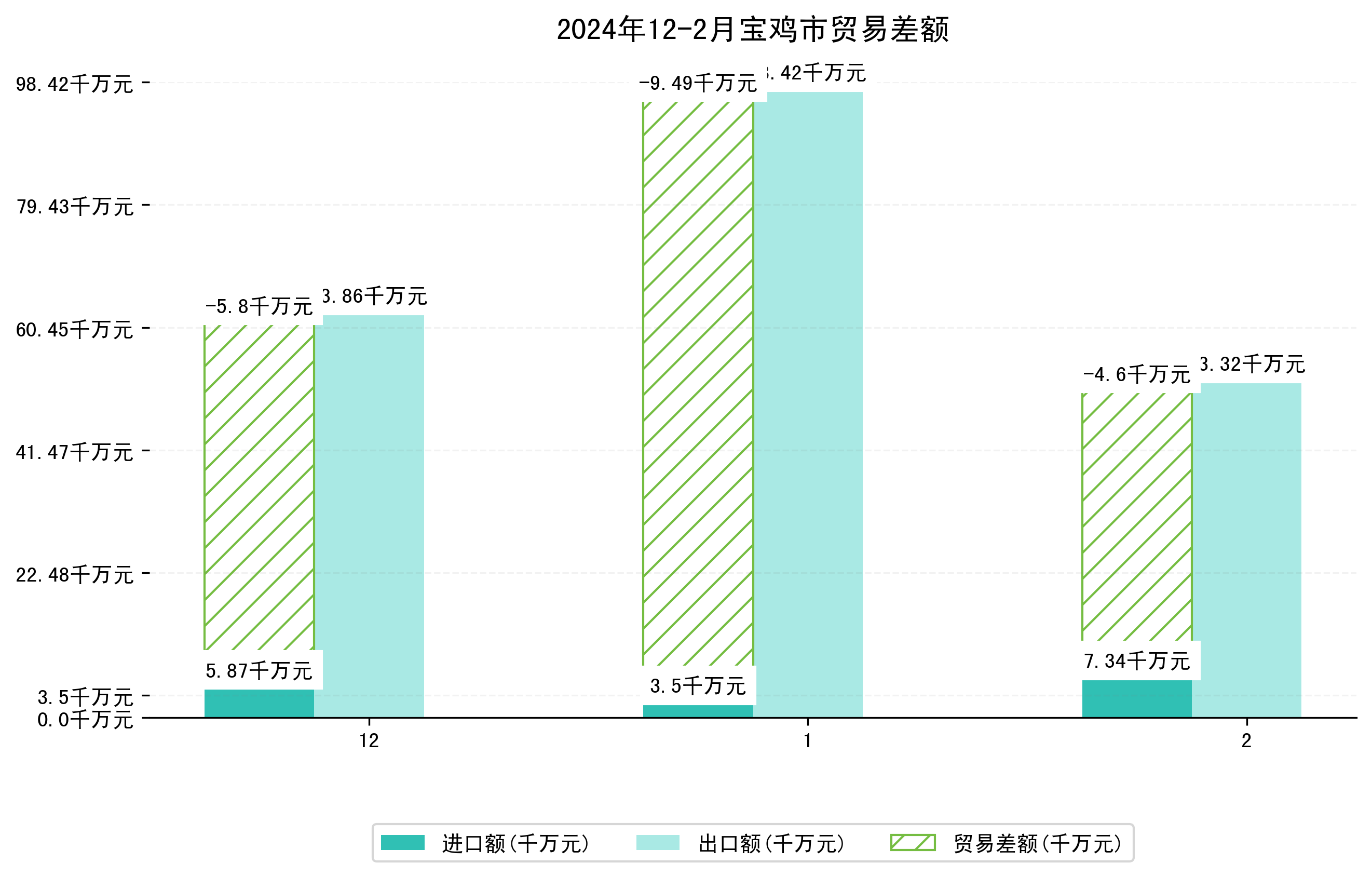 2024年2月宝鸡市进出口总额及进出口差额统计分析