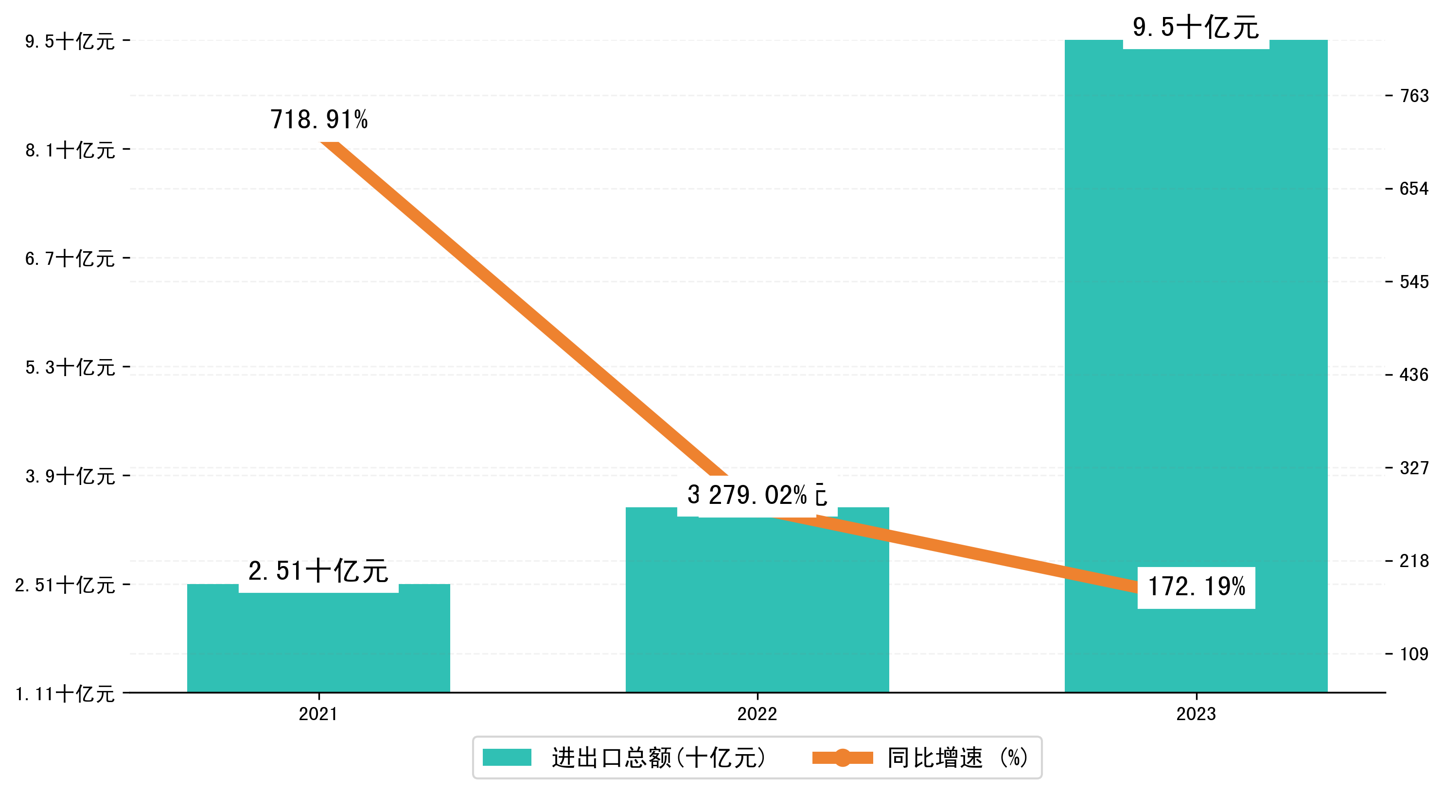 以人民币计,2023年1-1月宜春市进出口总额为94,9504.2754万元,相比上年同期增加了60,0665.0486万元,同比增加了173.20%。
