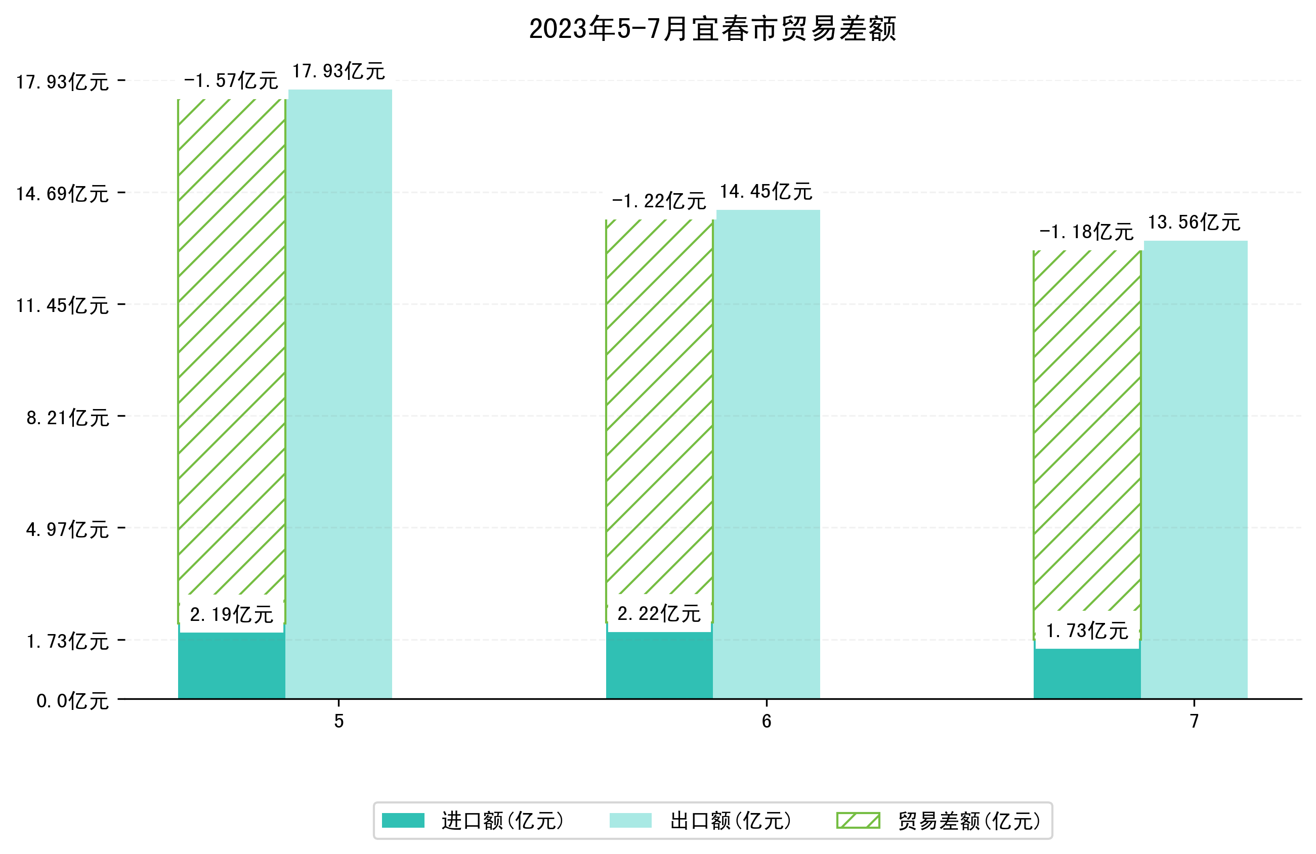2023年7月宜春市进出口总额及进出口差额统计分析
