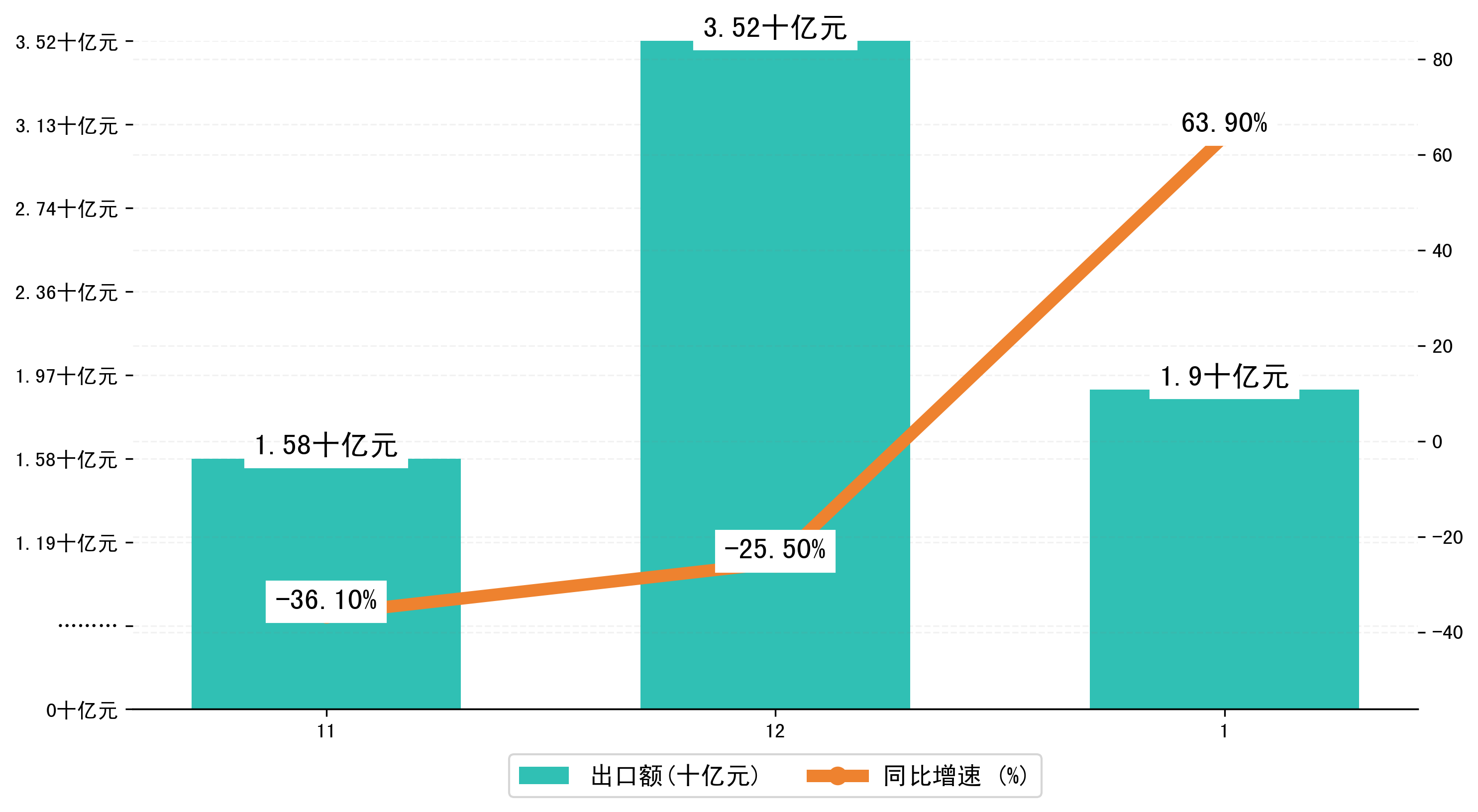 以人民币计,2025年1-1月宜春市出口额为19,0144.6675万元,相比上年同期增加了7,4145.4223万元,同比增加了63.90%。