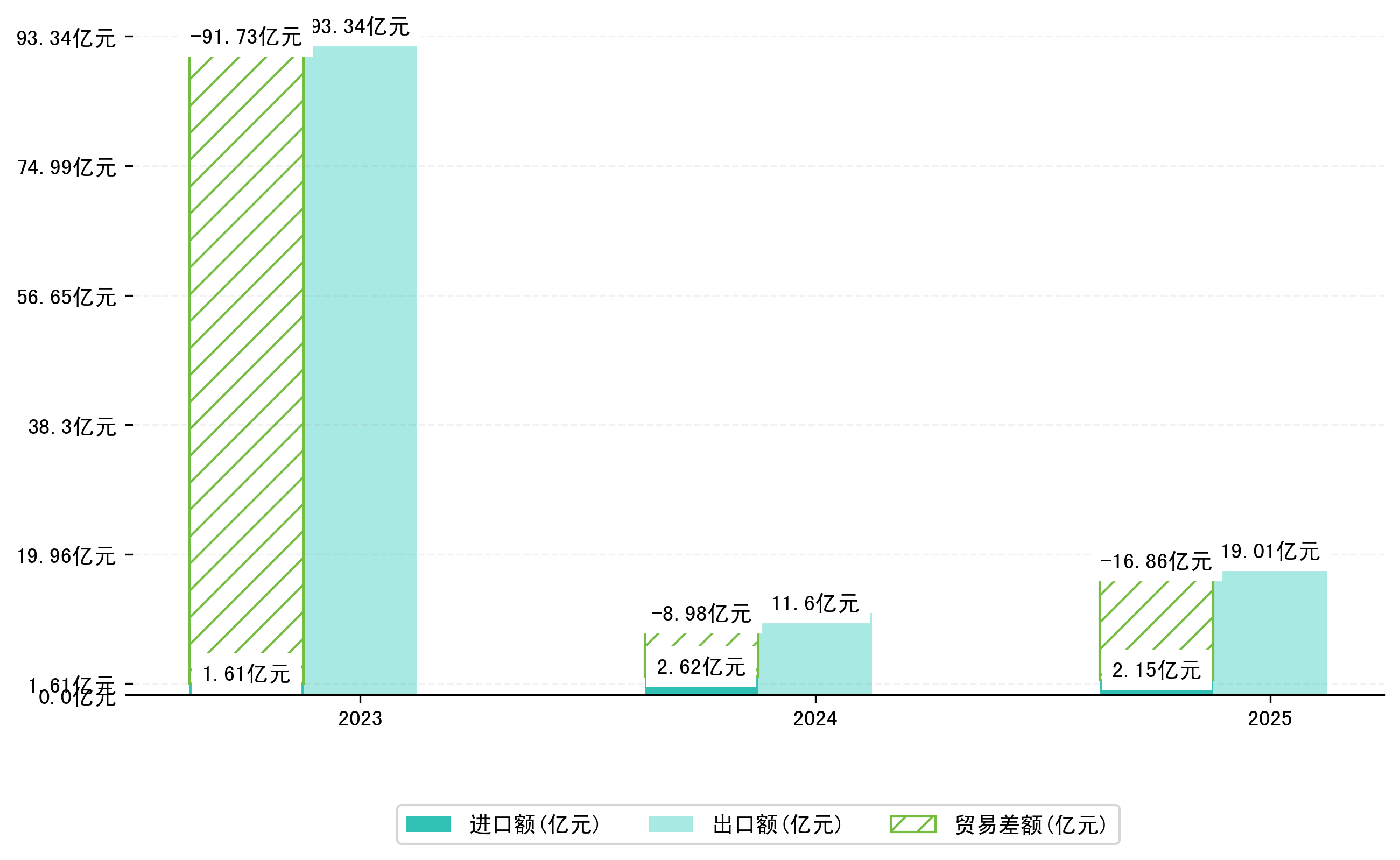以人民币计,2025年1-1月宜春市贸易差额为16,8648,7368万元(贸易顺差),相比上年同期增加了7,8803,7509万元,同比增加87.71%。