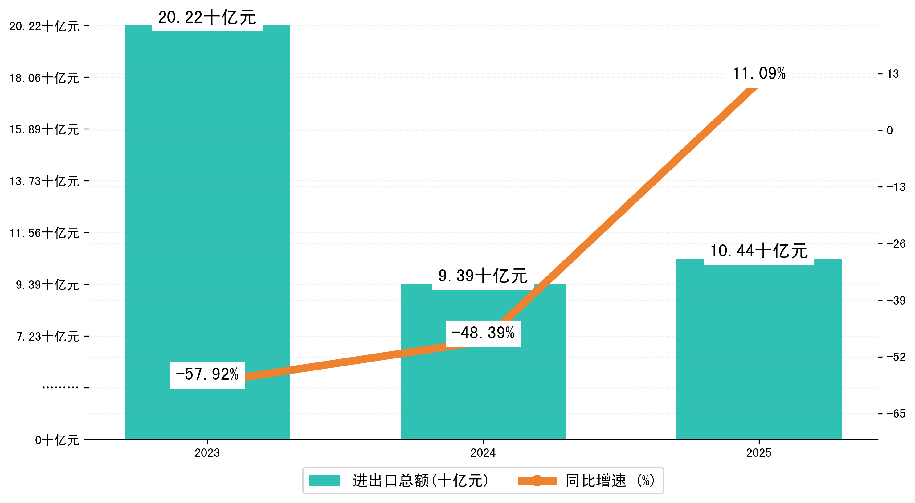 以美元计,2025年1-6月宜春市贸易差额为9,8739,8971万美元(贸易顺差),相比上年同期增加了1,2052,5300万美元,同比增加13.9%。