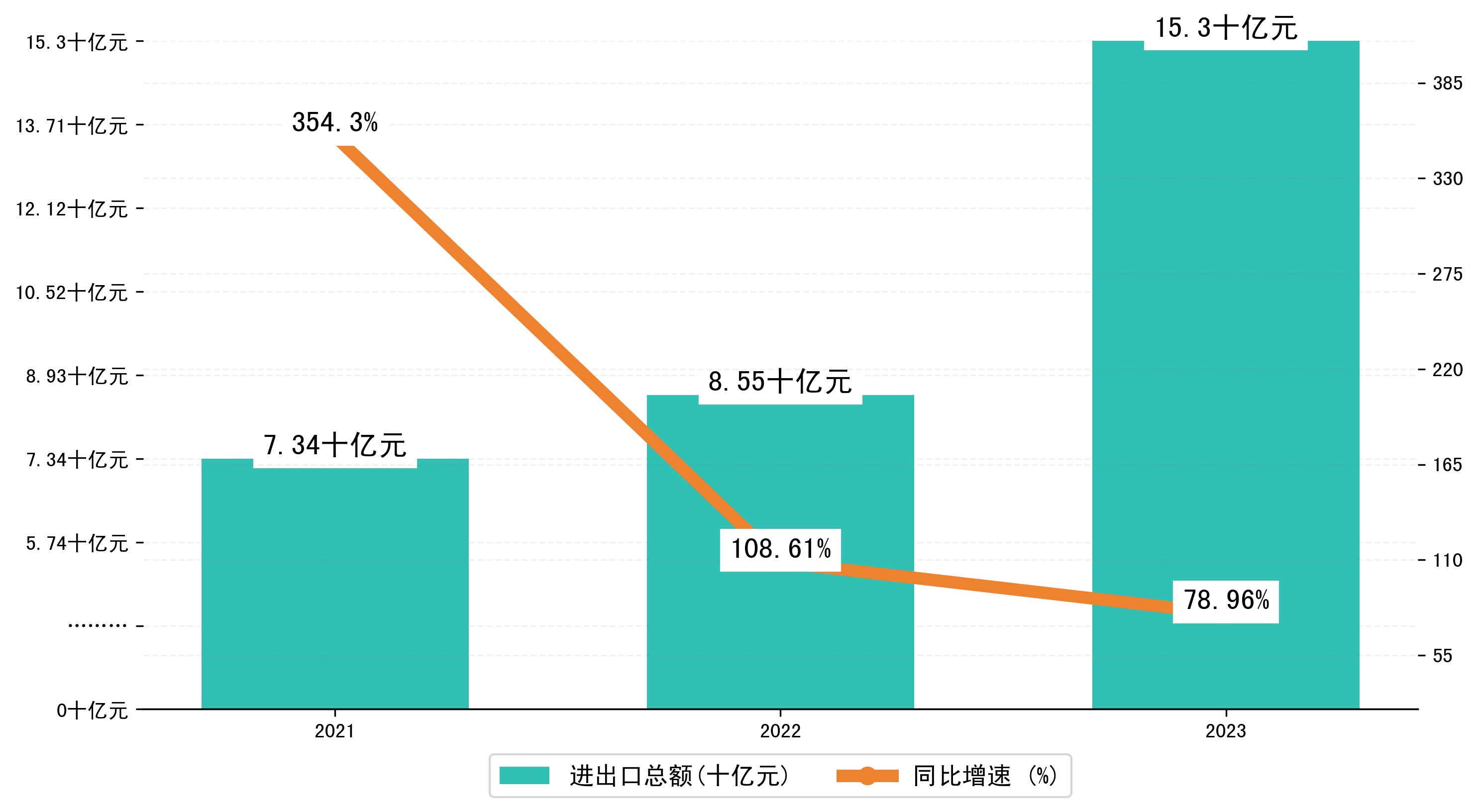 以人民币计,2023年1-3月宜春市进出口总额为153,0440.7702万元,相比上年同期增加了67,5268.1219万元,同比增加了82.00%。