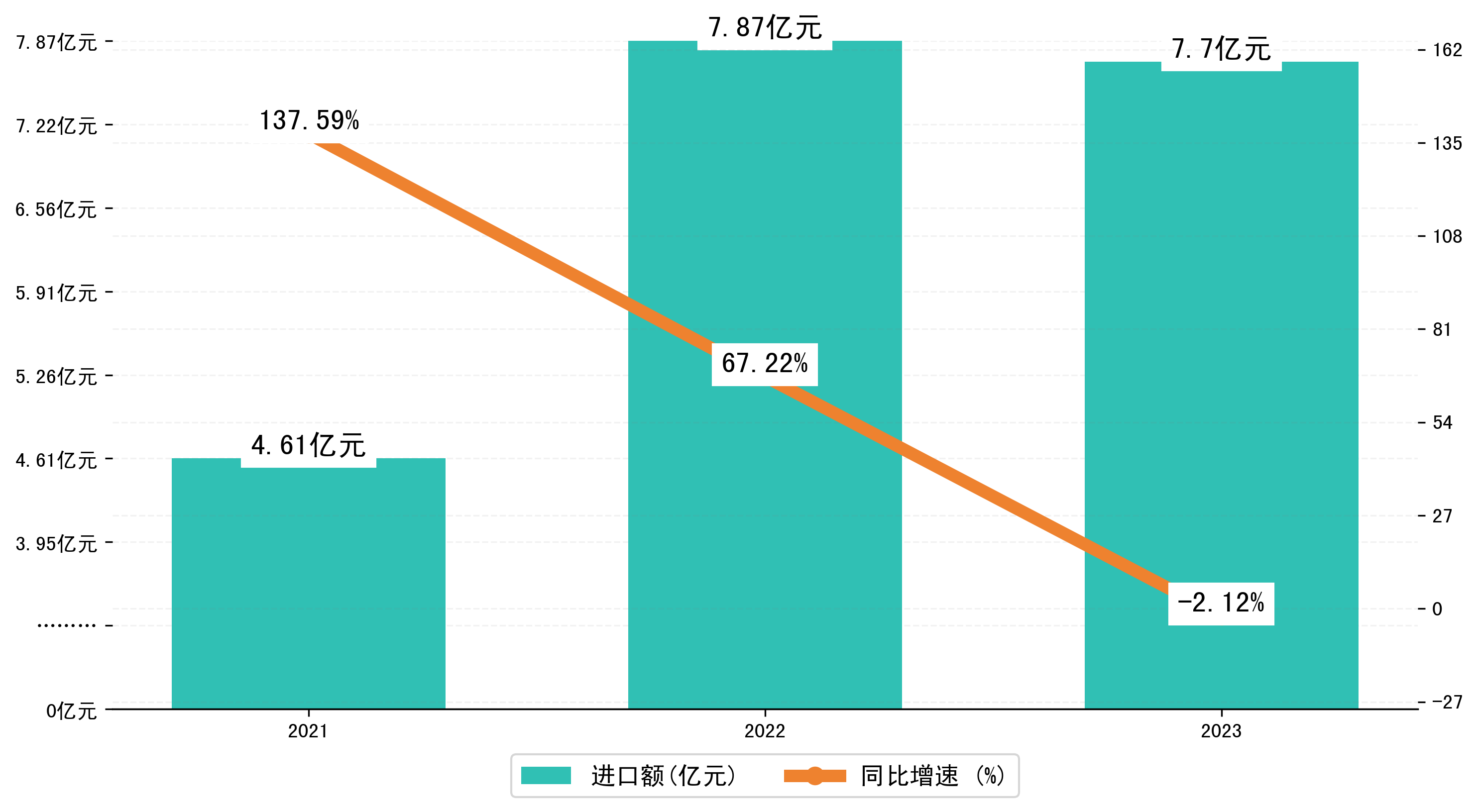 (图七:2021-2023年1-3月宜春市累计进口额)