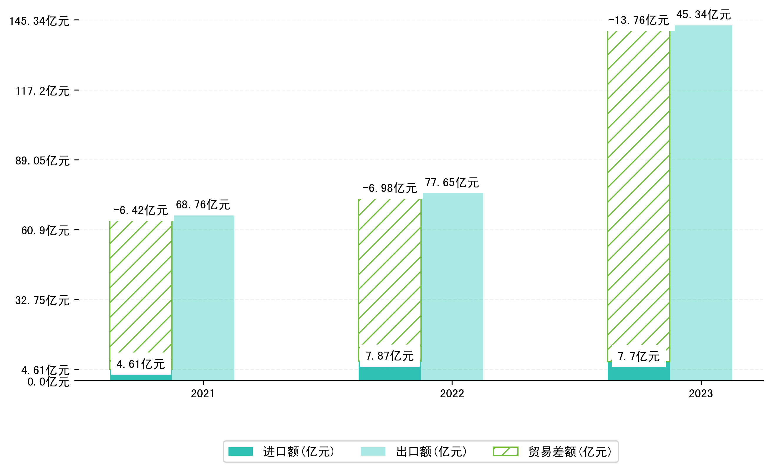 以人民币计,2023年1-3月宜春市贸易差额为137,6415,0696万元(贸易顺差),相比上年同期增加了67,8596,3748万元,同比增加97.25%。