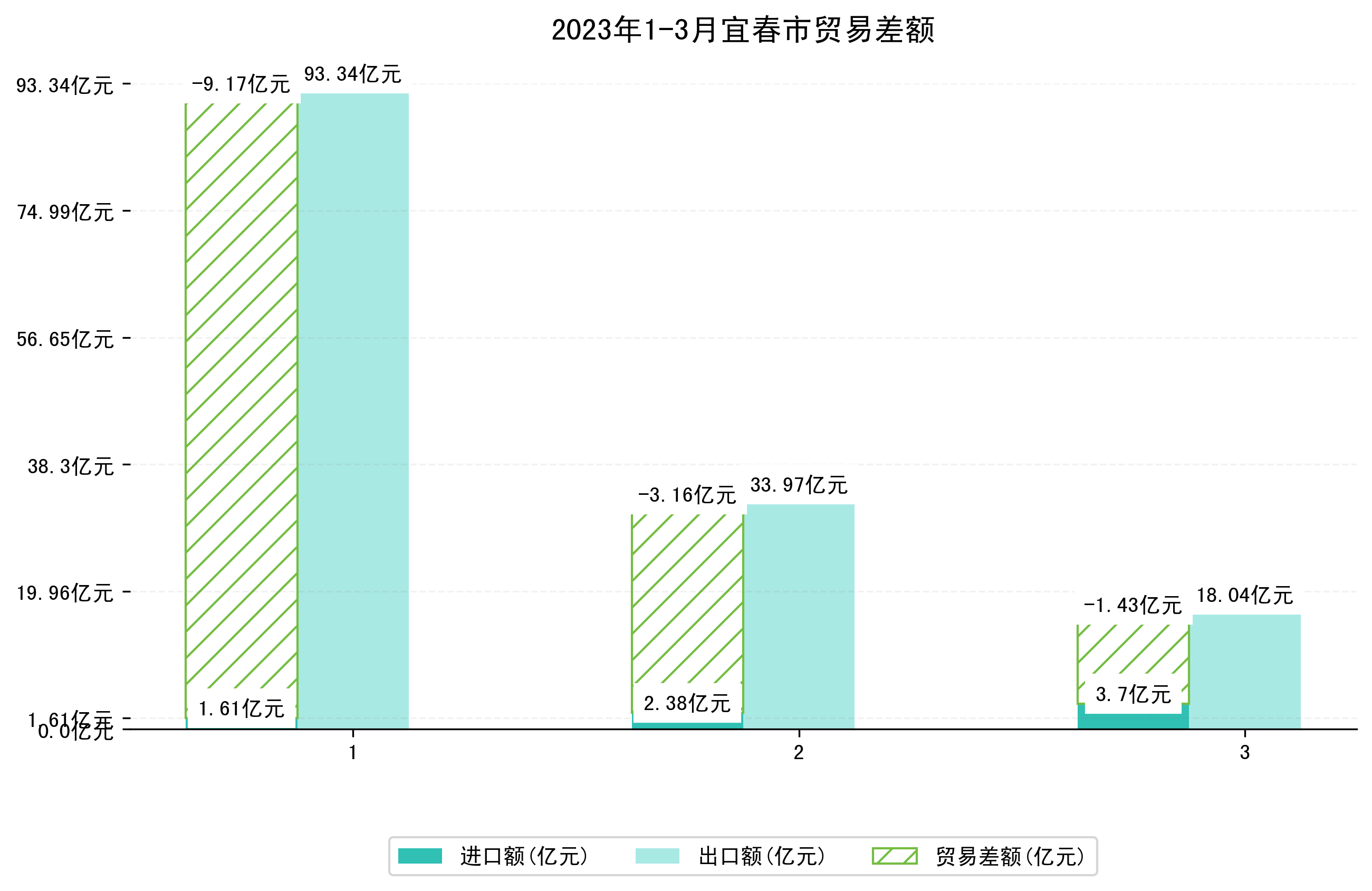 2023年3月宜春市进出口总额及进出口差额统计分析