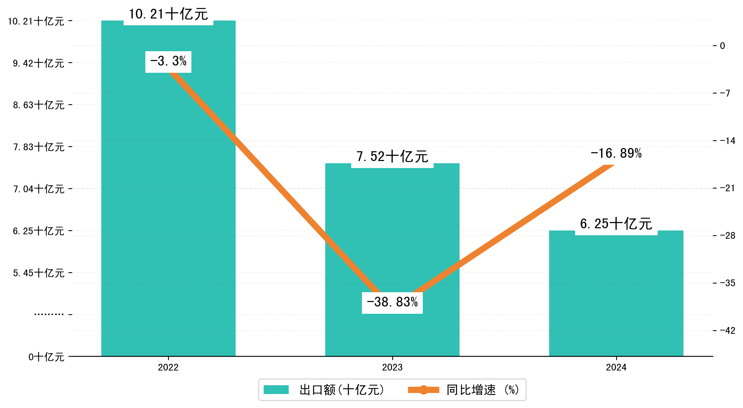 以美元计,2024年1-10月银川市出口额为8,7888.7784万美元,相比上年同期减少了1,9899.3306万美元,同比减少-20.20%。