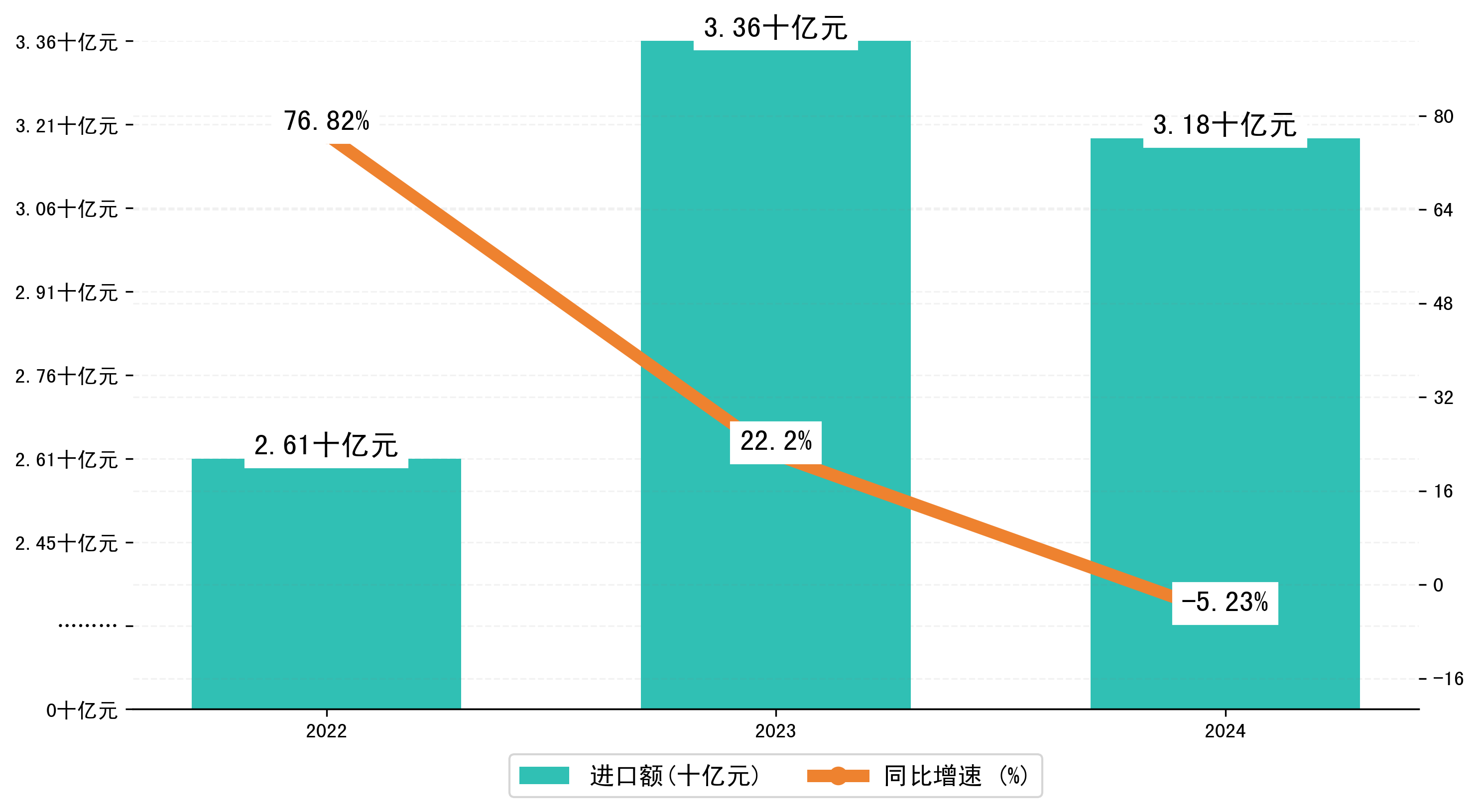 以人民币计,2024年1-10月银川市进口额为31,8358.5115万元,相比上年同期减少了1,7574.0724万元,同比减少了-13.50%。