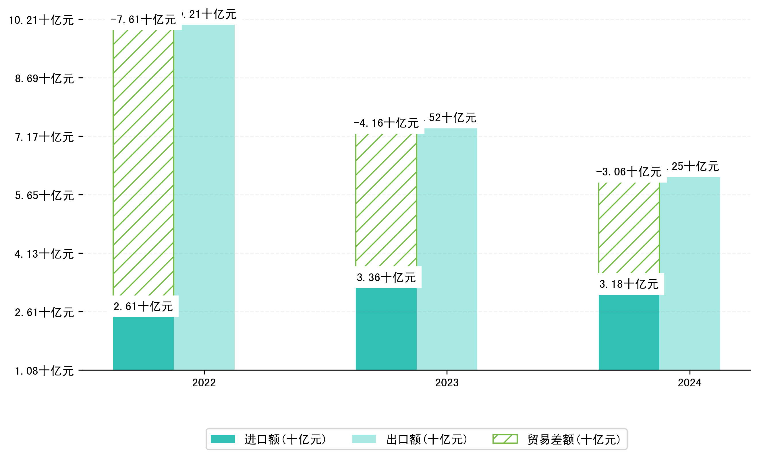 以人民币计,2024年1-10月银川市贸易差额为30,6432,4525万元(贸易顺差),相比上年同期减少了10,9436,5943万元,同比减少-26.32%。