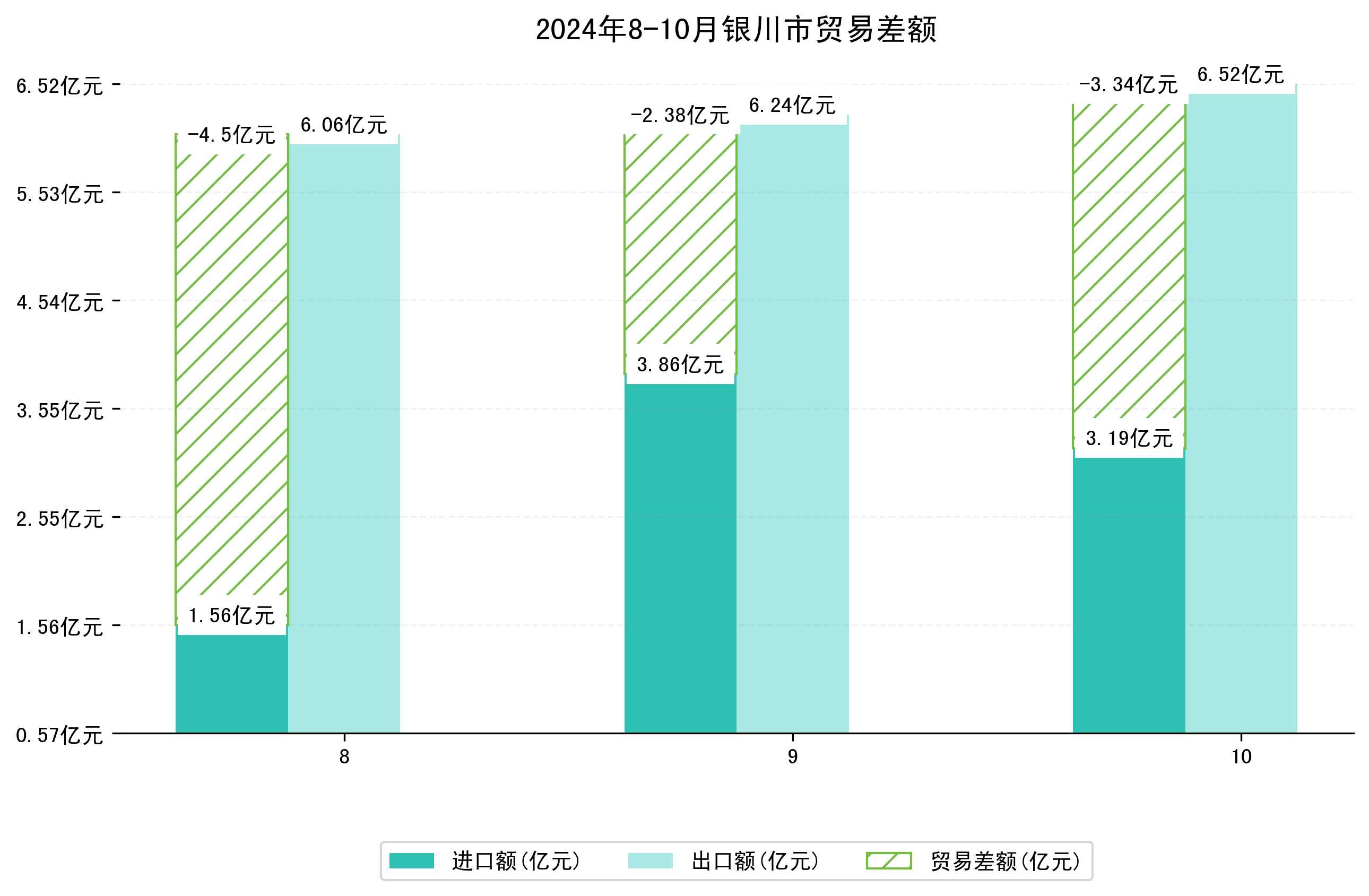 一、2024年10月银川市单月出口总额及进出口差额统计分析