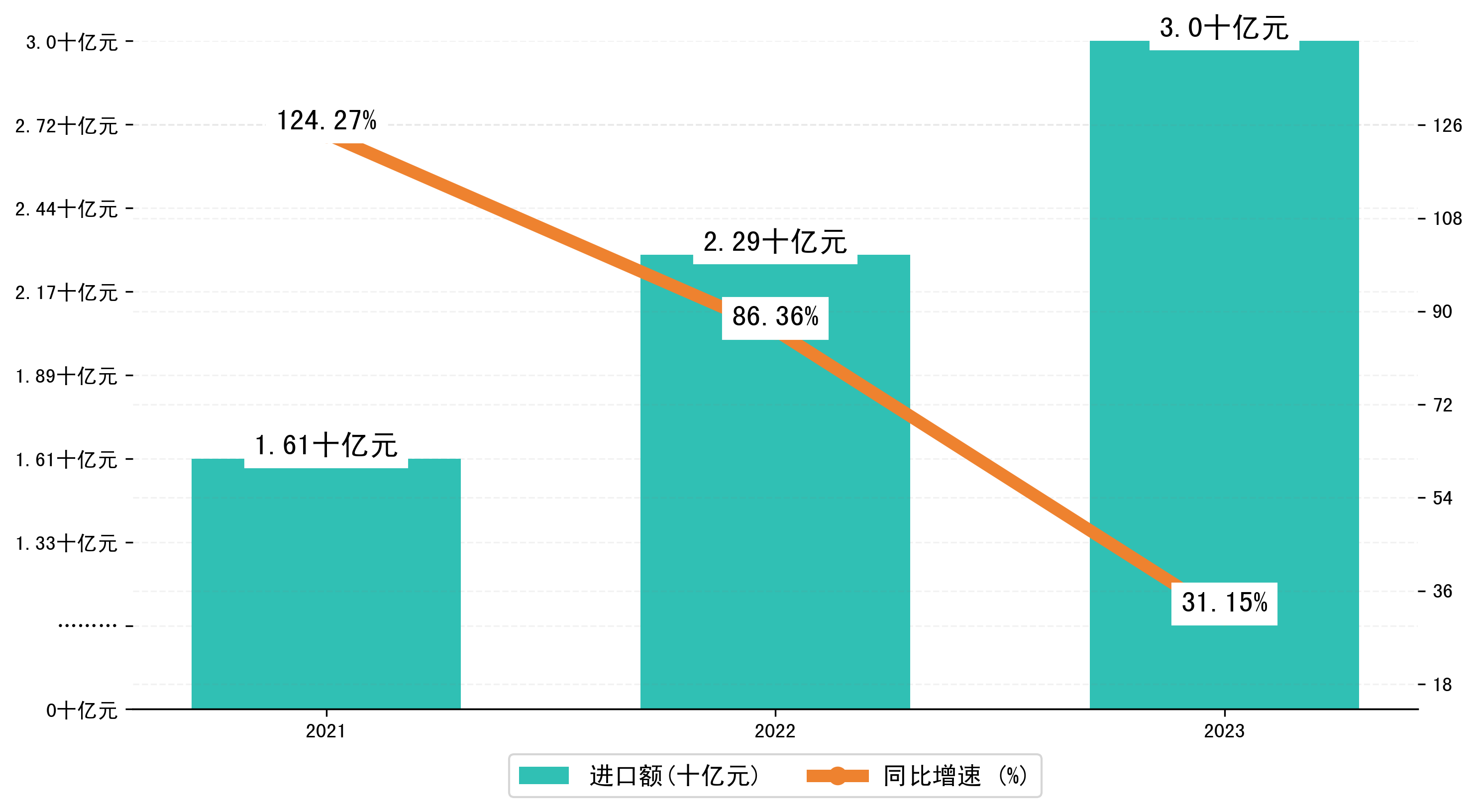 以人民币计,2023年1-9月银川市进口额为30,0091.9295万元,相比上年同期增加了7,1272.2503万元,同比增加了52.50%。
