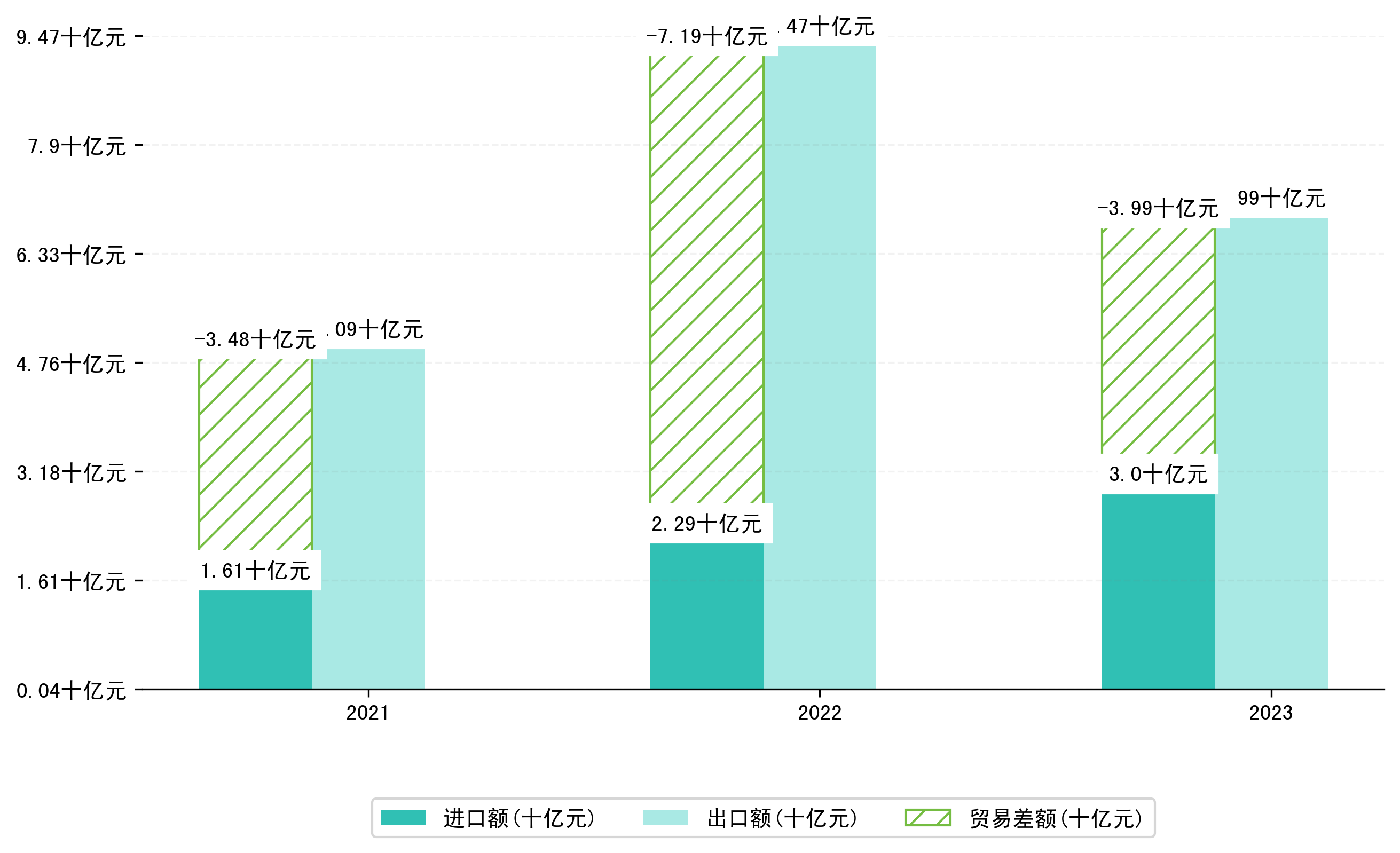 以人民币计,2023年9月银川市贸易差额为3,2986,8528万元(贸易顺差),相比上月增加了1,3859,1590万元,即1870,4391万美元;相比上年同期减少了4,3143,6725万元,同比减少-56.67%。