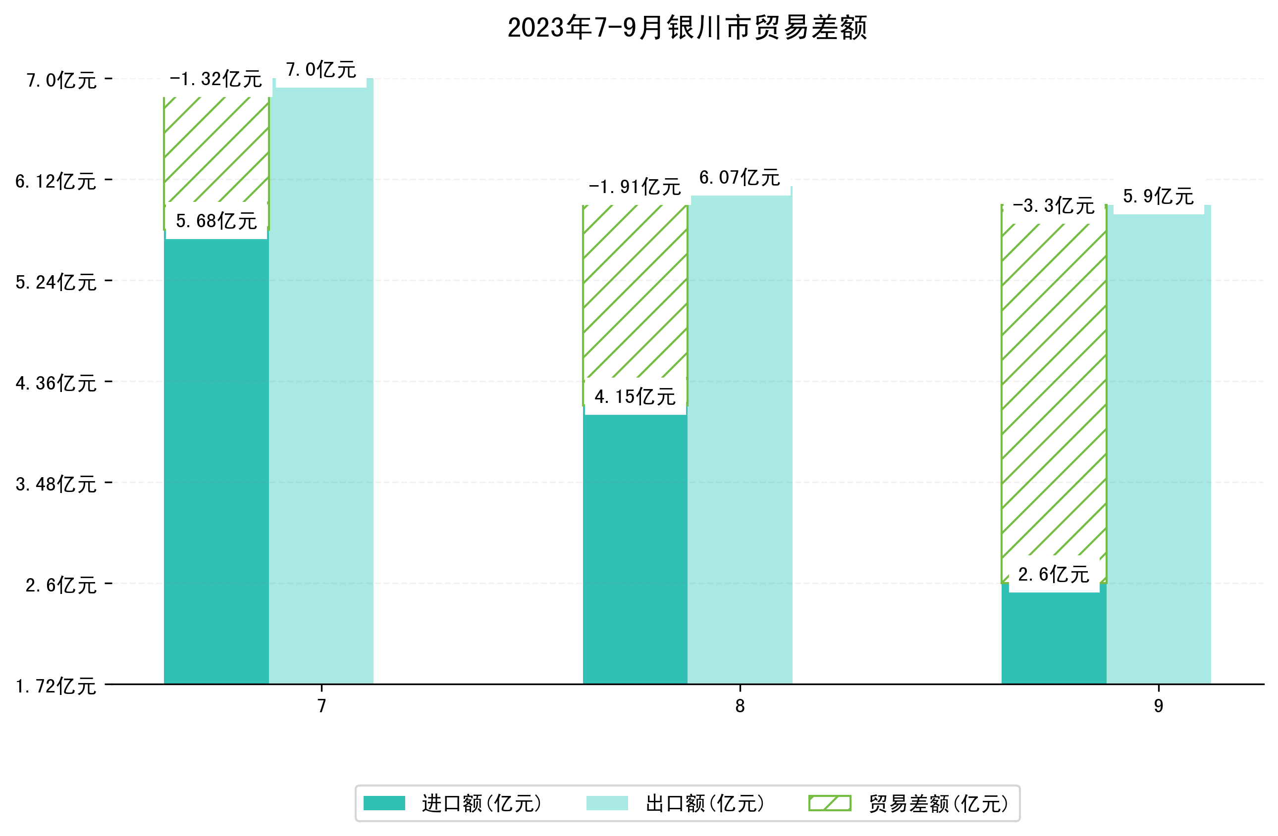 一、2023年9月银川市单月出口总额及进出口差额统计分析