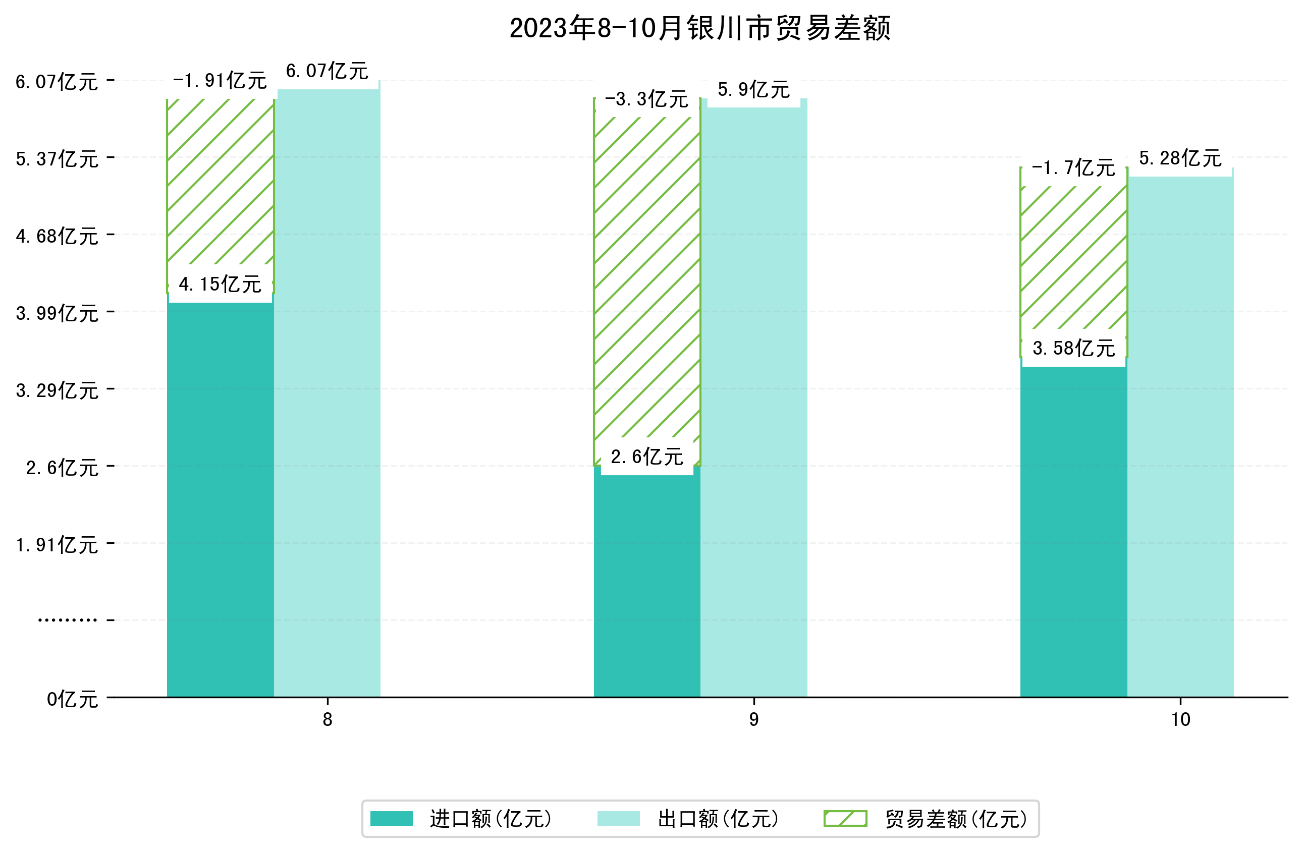 一、2023年10月银川市单月出口总额及进出口差额统计分析