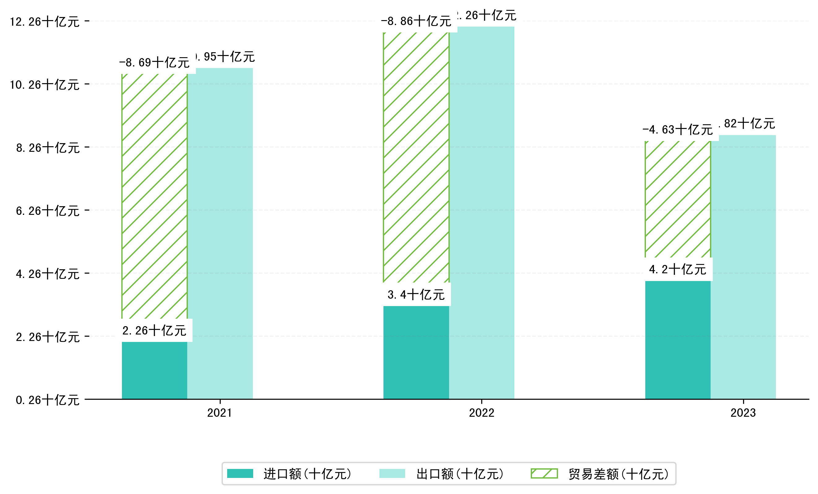 以人民币计,2023年1-12月银川市贸易差额为46,2691,4104万元(贸易顺差),相比上年同期减少了42,3563,0190万元,同比减少-47.79%。