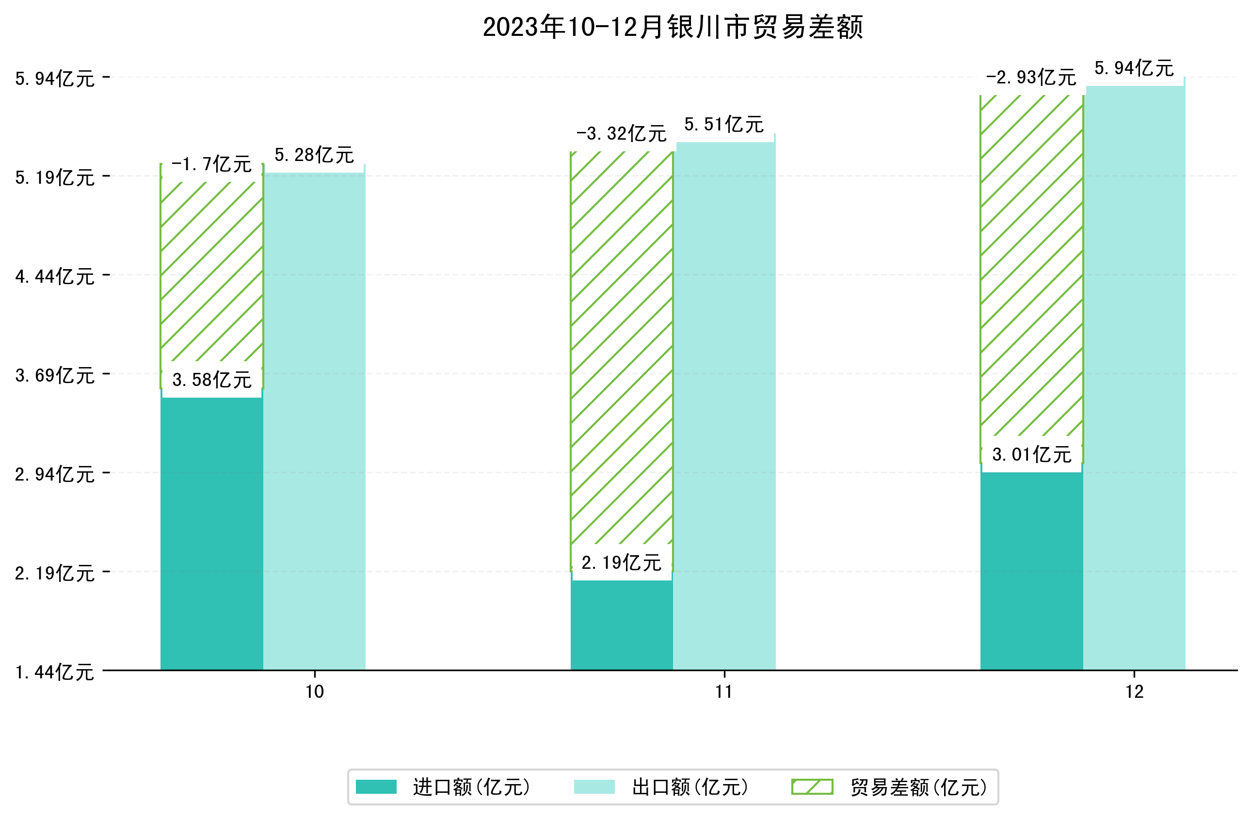 一、2023年12月银川市单月出口总额及进出口差额统计分析