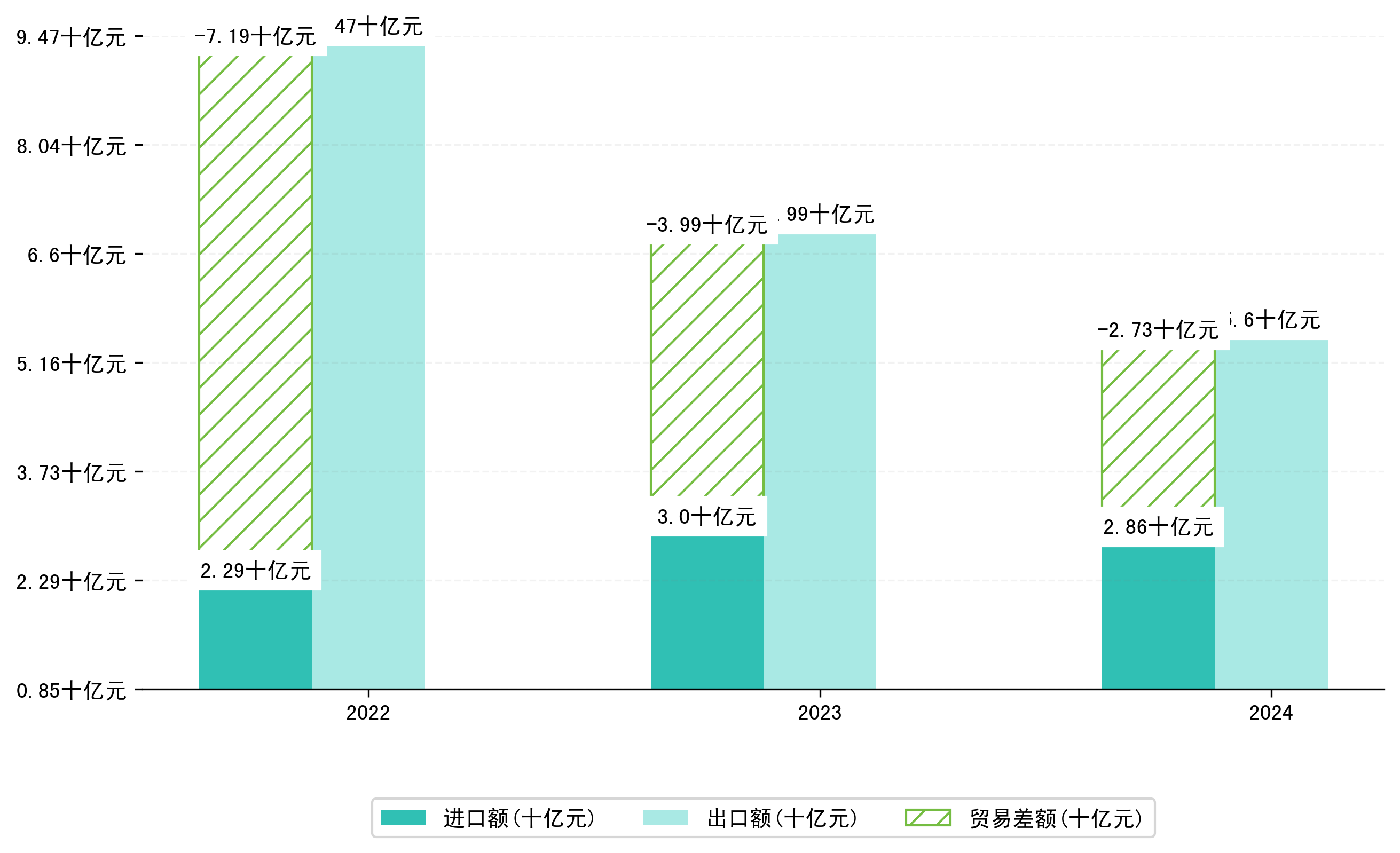 以人民币计,2024年1-9月银川市贸易差额为27,3272,1420万元(贸易顺差),相比上年同期减少了12,5626,7003万元,同比减少-31.49%。