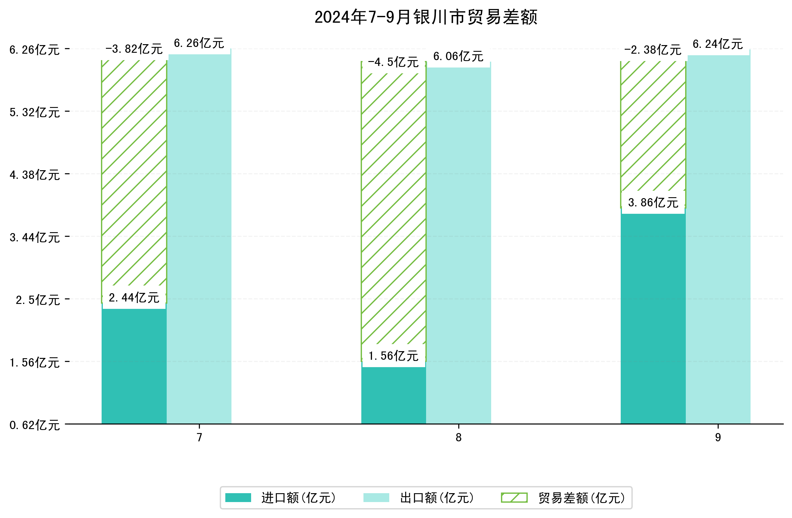 一、2024年9月银川市单月出口总额及进出口差额统计分析