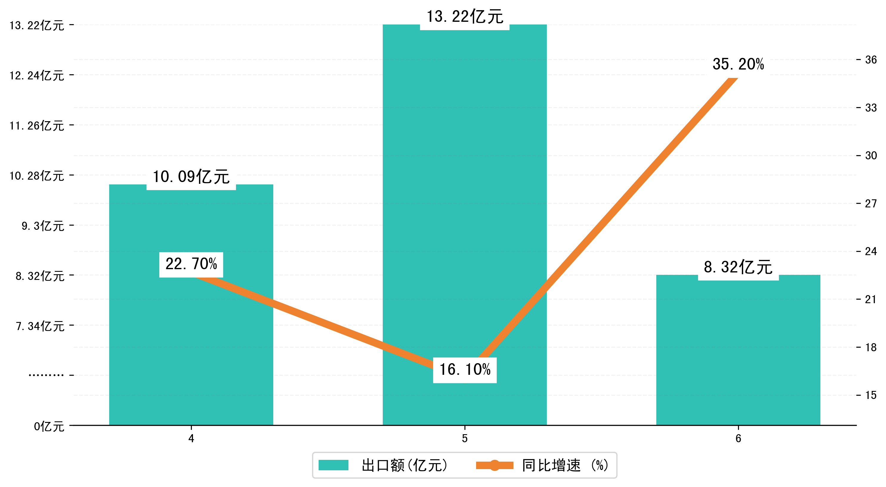 以人民币计,2023年1-6月银川市出口额为52,0791.8553万元,相比上年同期减少了3,6436.427万元,同比增加了35.20%。