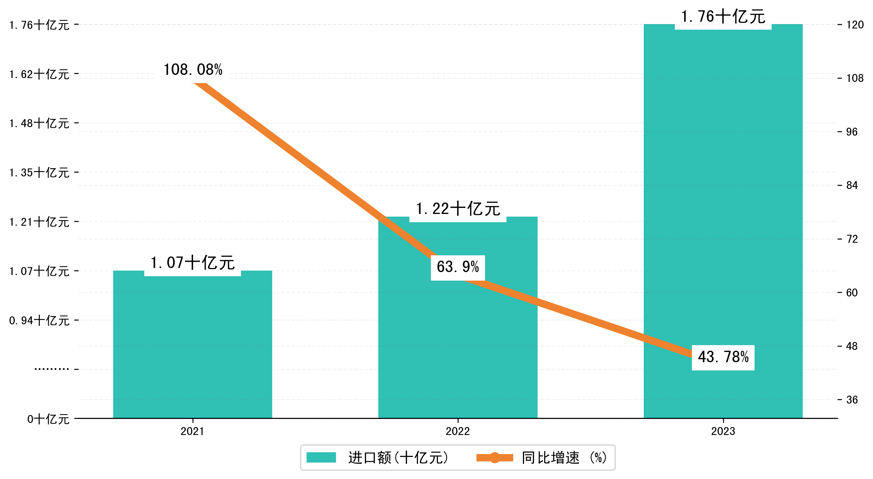 以人民币计,2023年1-6月银川市进口额为17,5751.173万元,相比上年同期增加了5,3515.903万元,同比增加了51.50%。