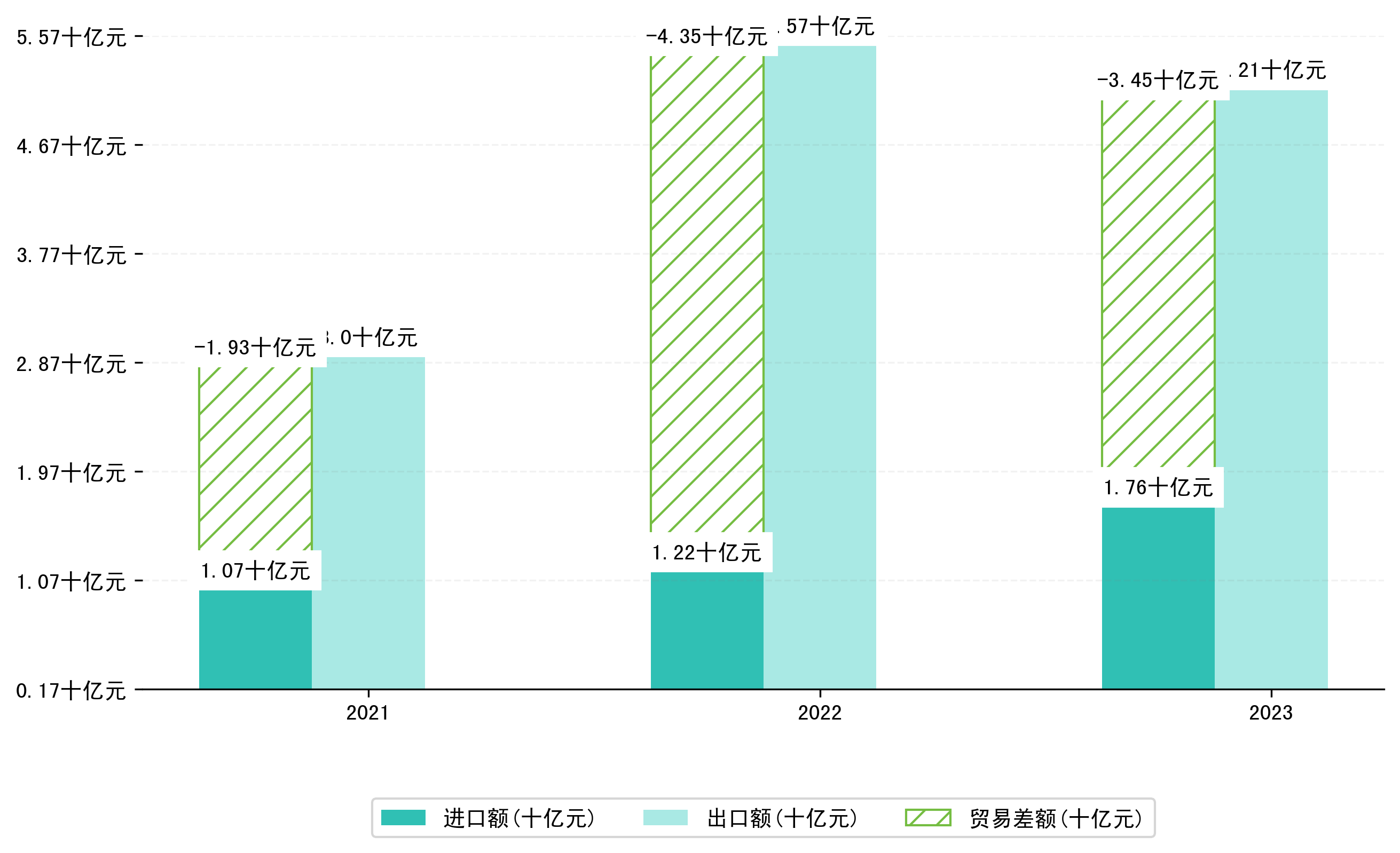 以美元计,2023年1-6月银川市贸易差额为5,0151,8843万美元(贸易顺差),相比上年同期减少了1,7352,8759万美元,同比减少-25.71%。