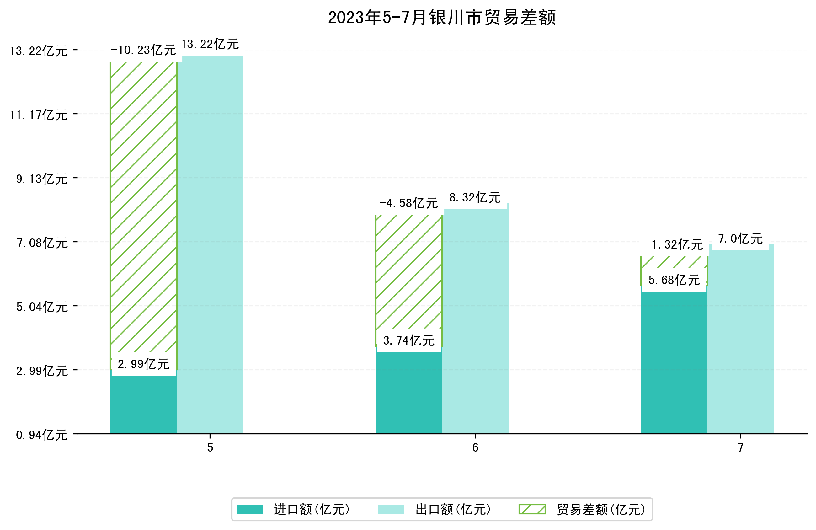 一、2023年7月银川市单月出口总额及进出口差额统计分析