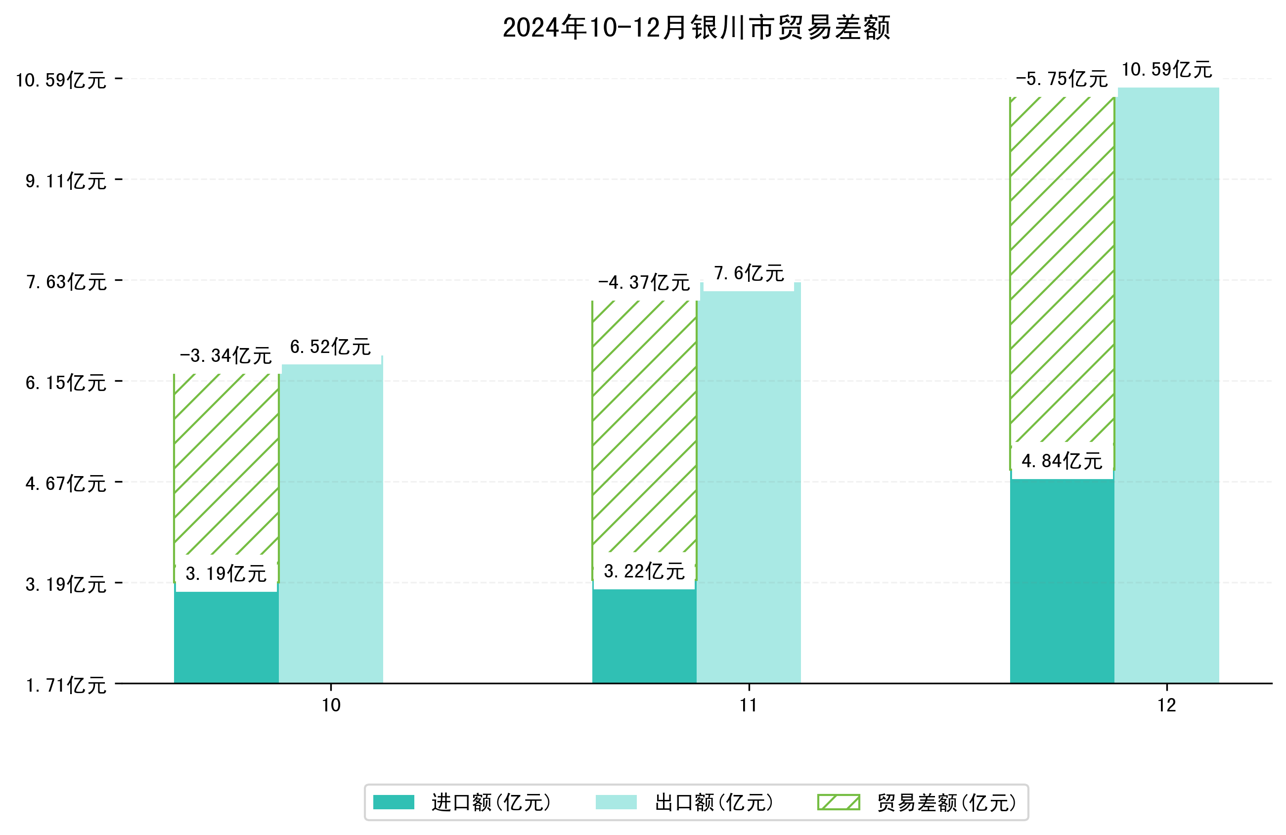 一、2024年12月银川市单月出口总额及进出口差额统计分析