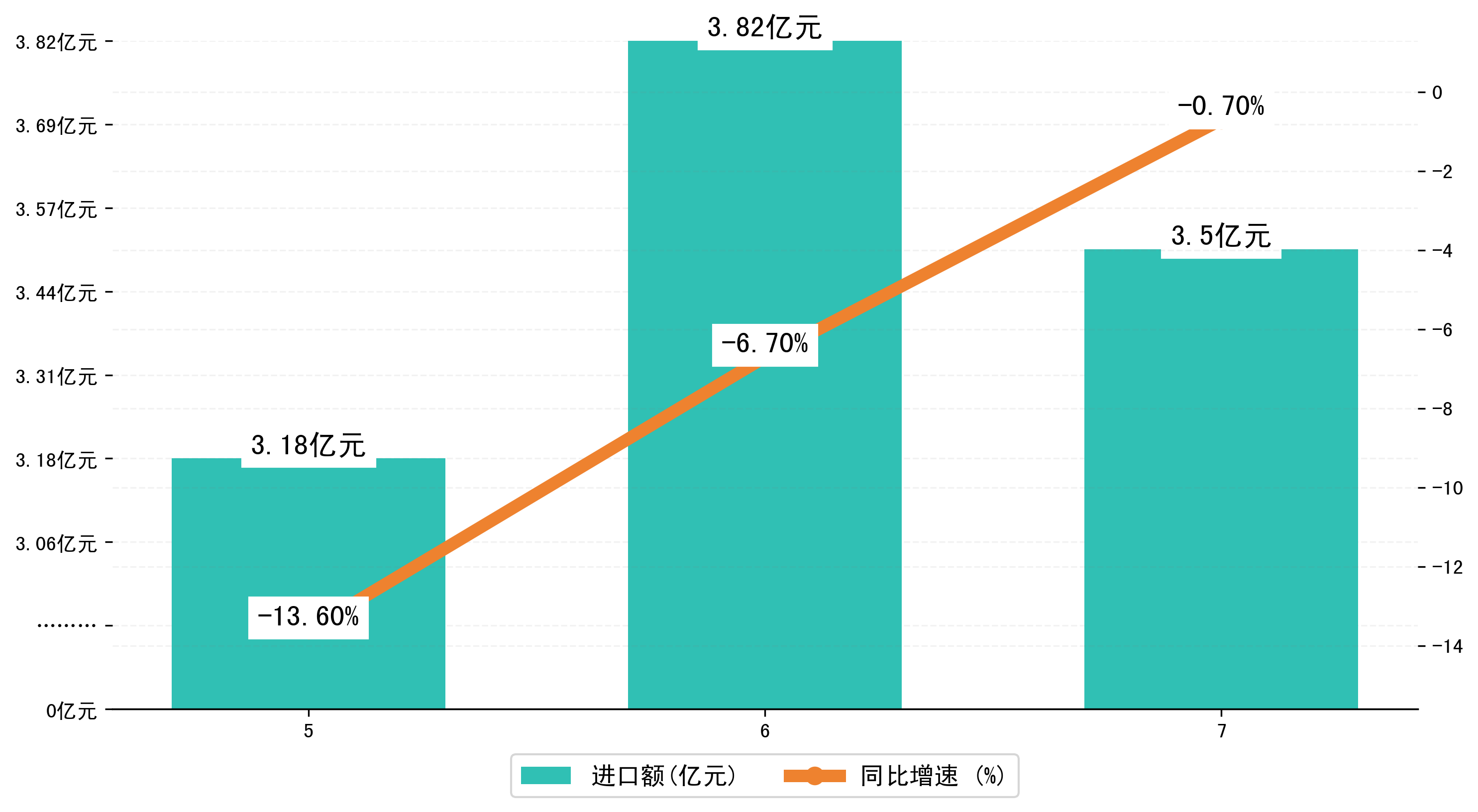 以美元计,2025年1-7月银川市贸易差额为3,5820,7019万美元(贸易顺差),相比上年同期增加了7011,4223万美元,同比增加24.34%。